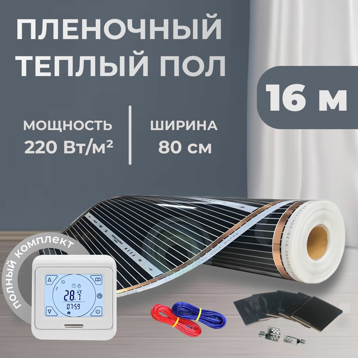 Пленочный теплый пол 16 м. п. комплект ширина 80см с Сенсорным терморегулятором