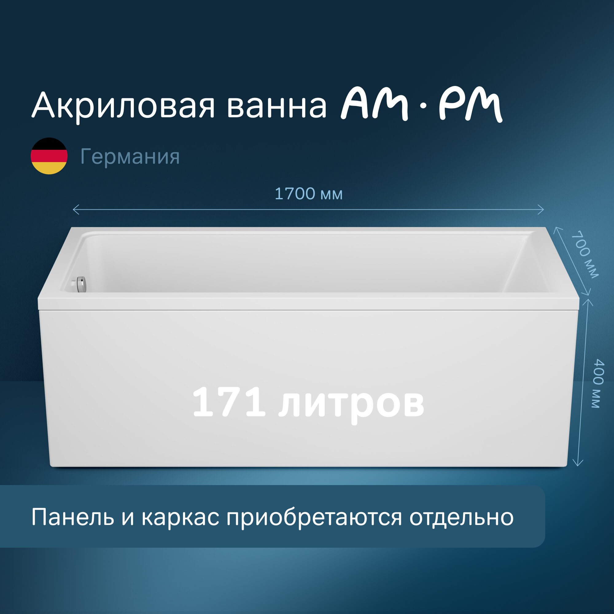 Ванна акриловая 170x70 см AM.PM Gem W90A-170-070W-A1, литьевой акрил, ванная 170 на 70, вакуумная формовка, усиленный корпус, ванны акриловые, увеличенный внутренний объем, гарантия 15 лет, Германия интересное: