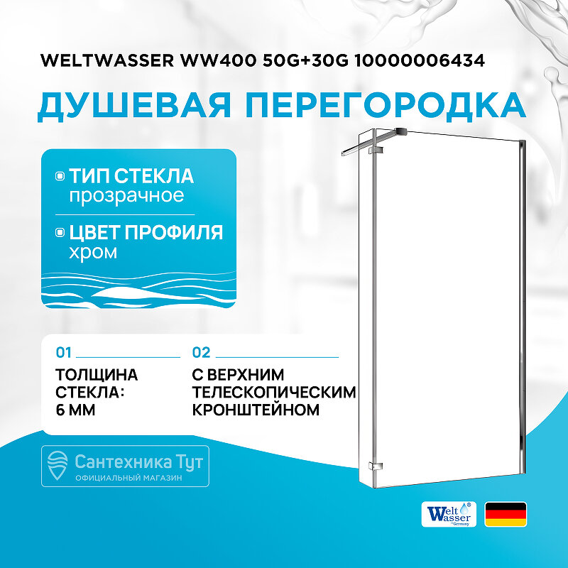 Душевая перегородка WeltWasser WW400 50G+30G 10000006434 профиль Хром стекло прозрачное интересное: