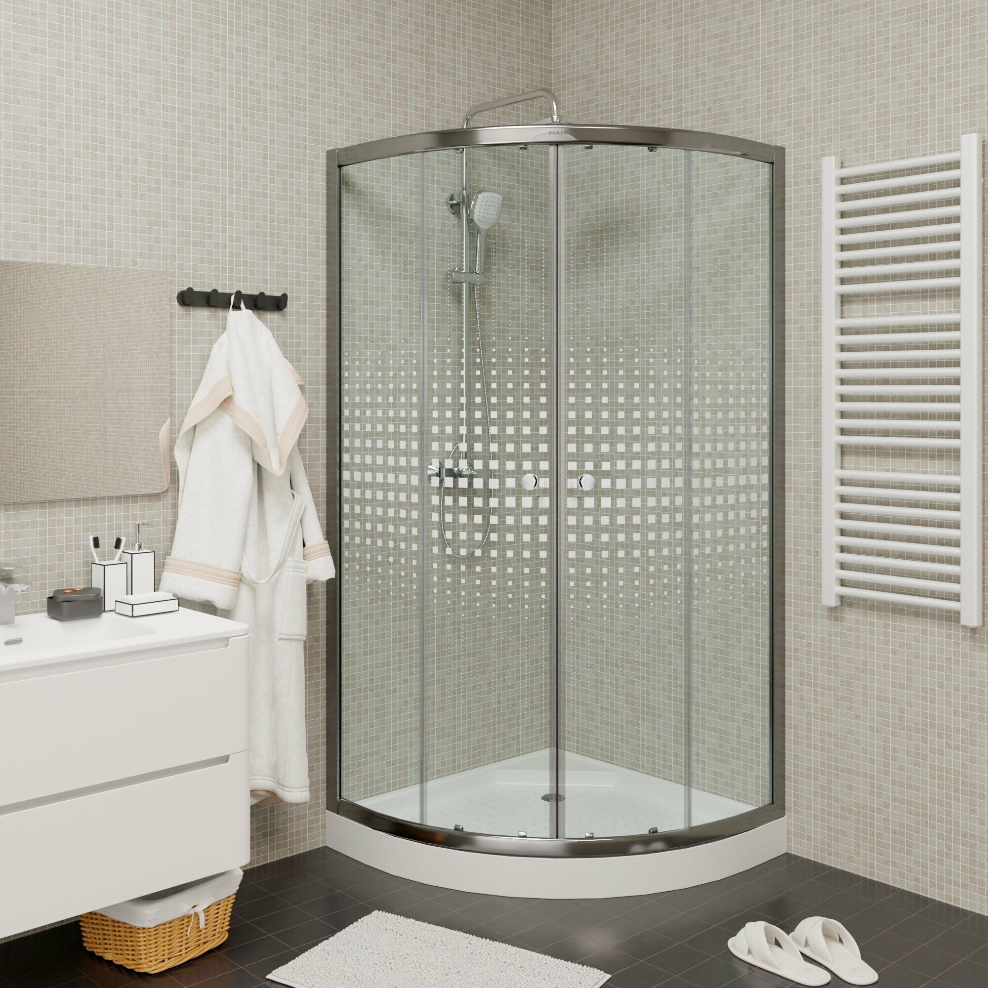 Душевой уголок PARLY Z9111 (90х90х193), Низкий поддон, Профиль хром, Стекло прозрачное с рисунком интересное: