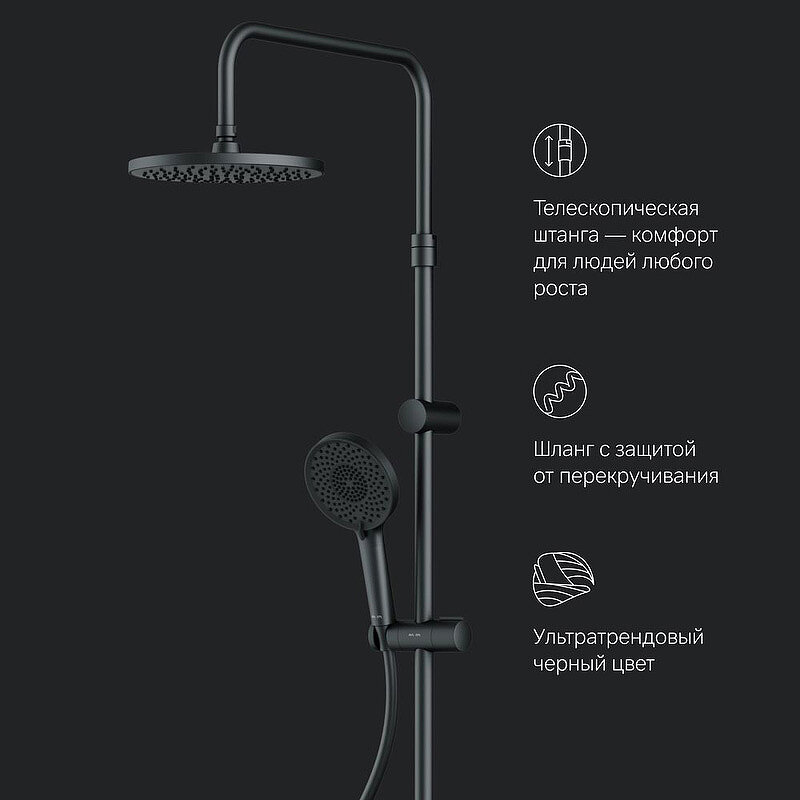 | Особенности | держатель душевой лейки / защита от обратного потока / защита от скручивания / обратный клапан / регулируемый верхний душ |