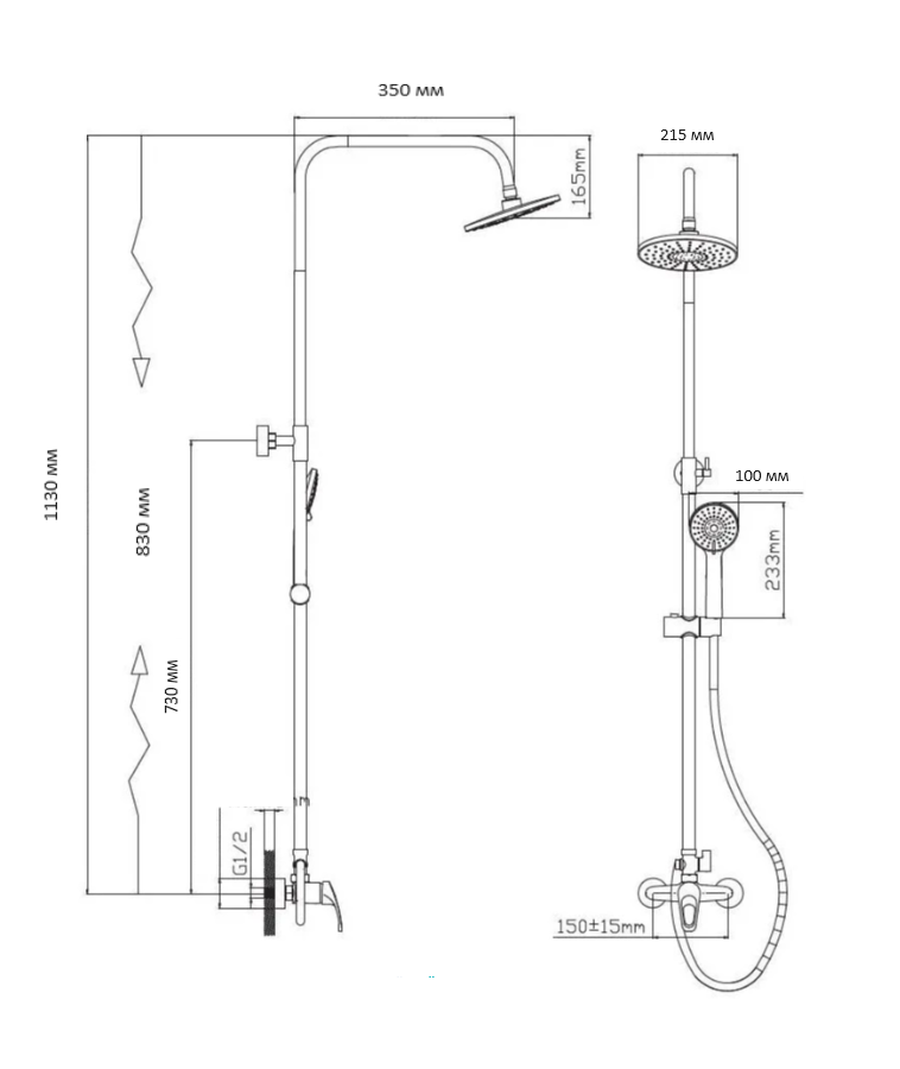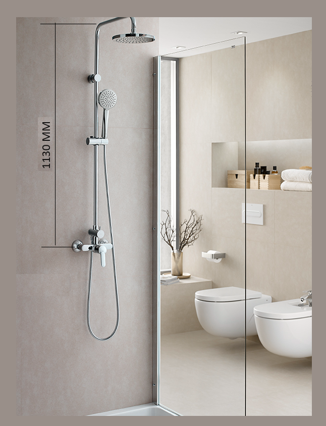 | Комплектация | верхний душ / держатель лейки / дивертор / душевая стойка / излив для набора воды / кронштейн для верхнего душа / лейка / набор эксцентриков / отражатель / переключатель потоков / ручной душ / Смеситель / шланг |