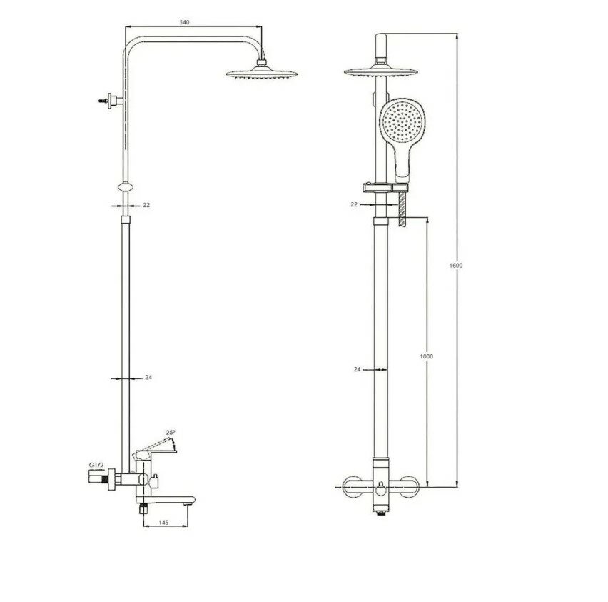 | Форма верхнего душа | круглая |