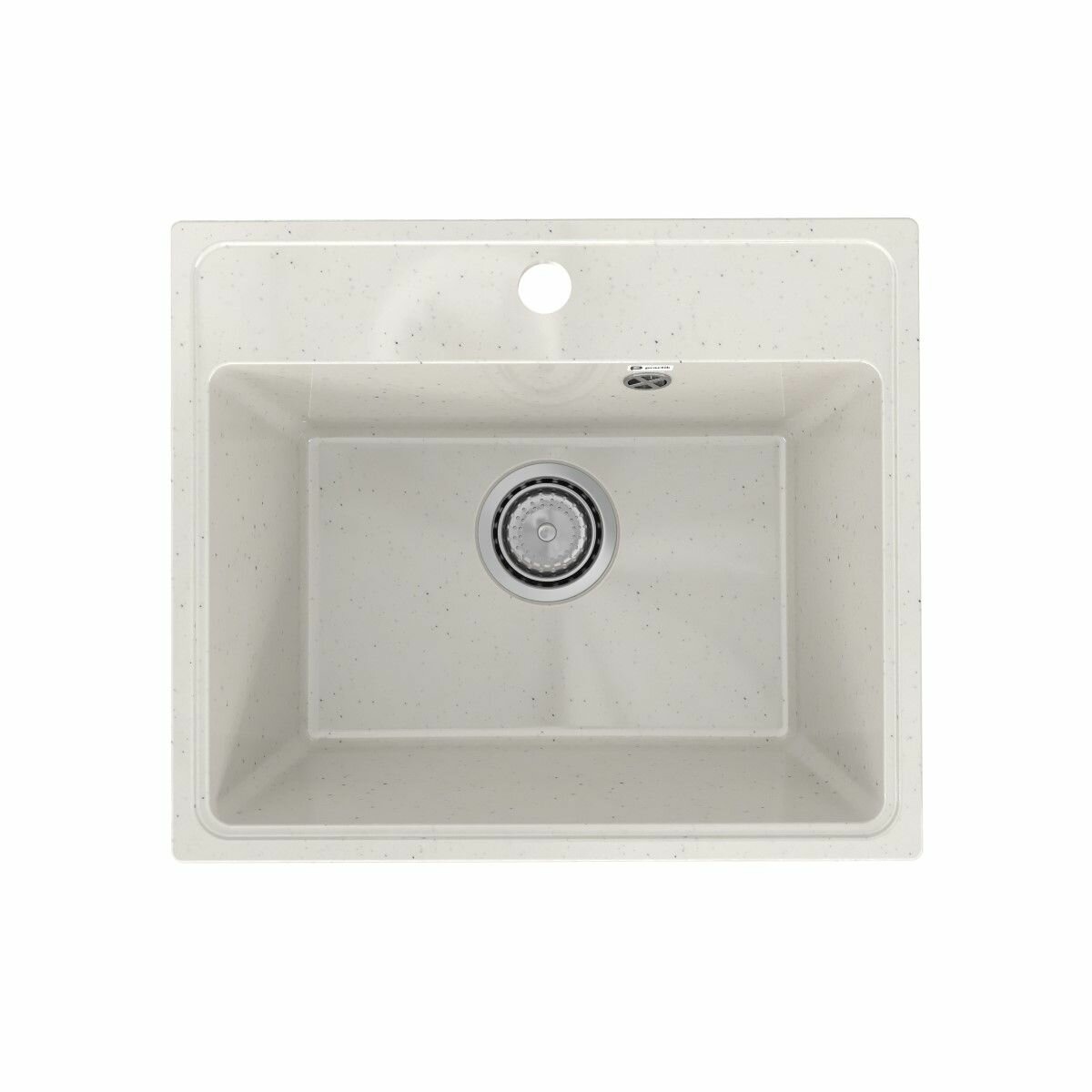 Мойка кухонная Practik из искусственного камня прямоугольная без сифона PR-M-575, цвет: белый камень, база: 55.5х47 см, арт. PR-M-575-001