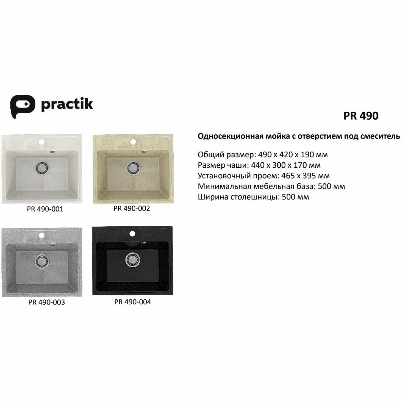 Кухонная мойка Practik PR-M-490-001 (без сифона), белый камень