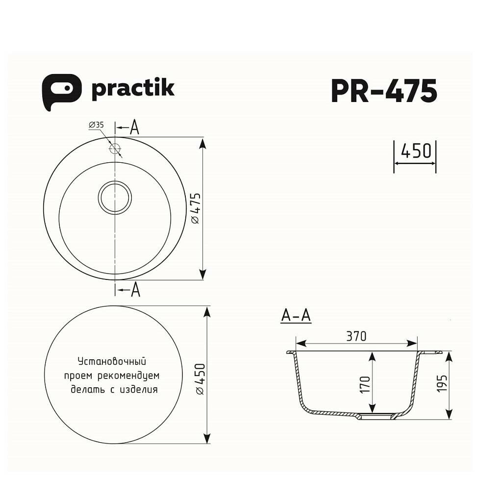 Мойка Practik PR-M 475-004 черный оникс