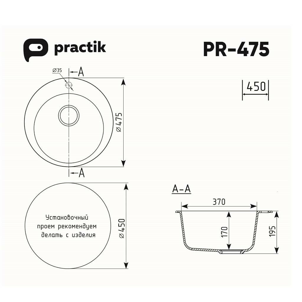 Мойка Practik PR-M 475-004 черный оникс
