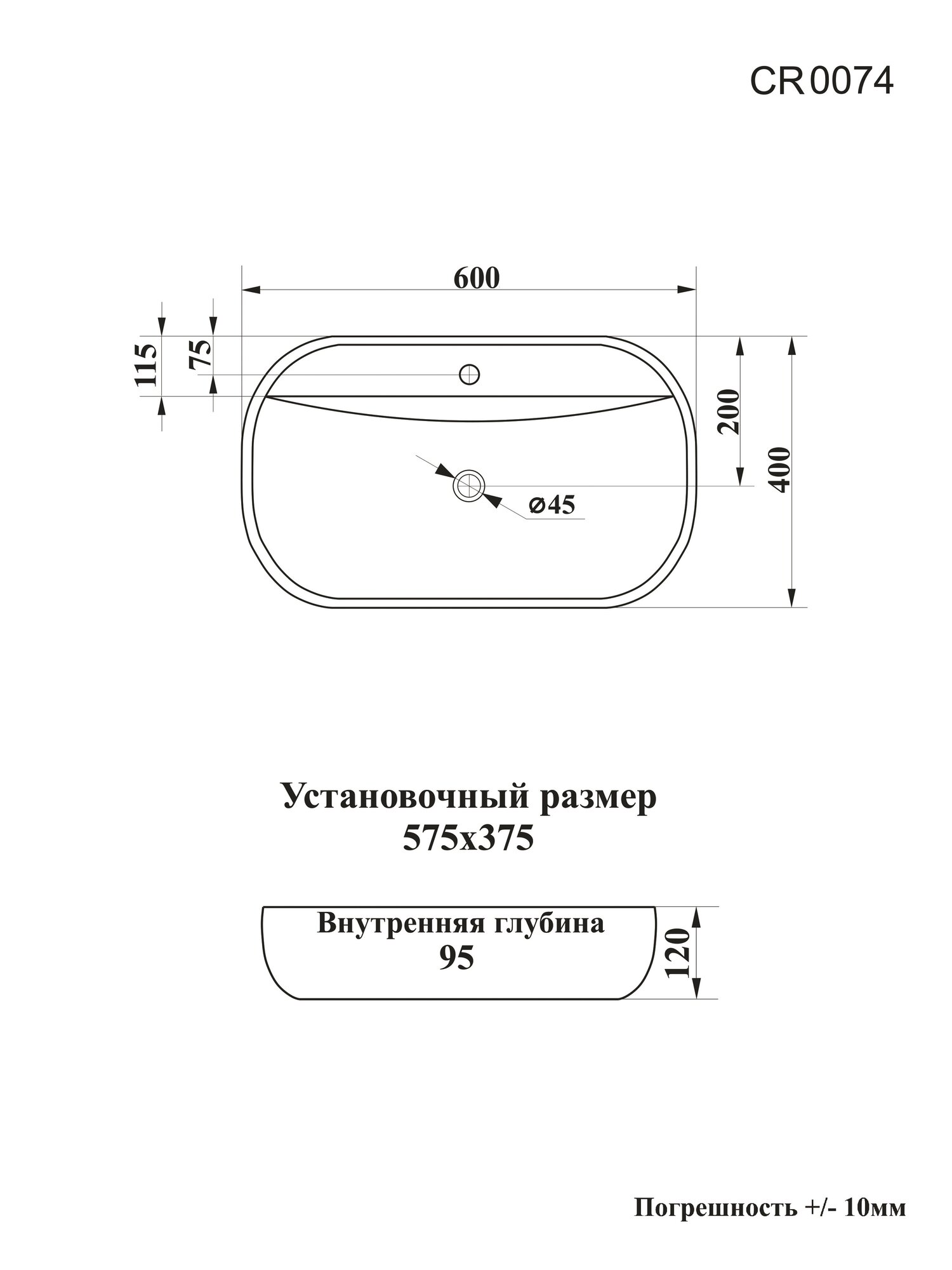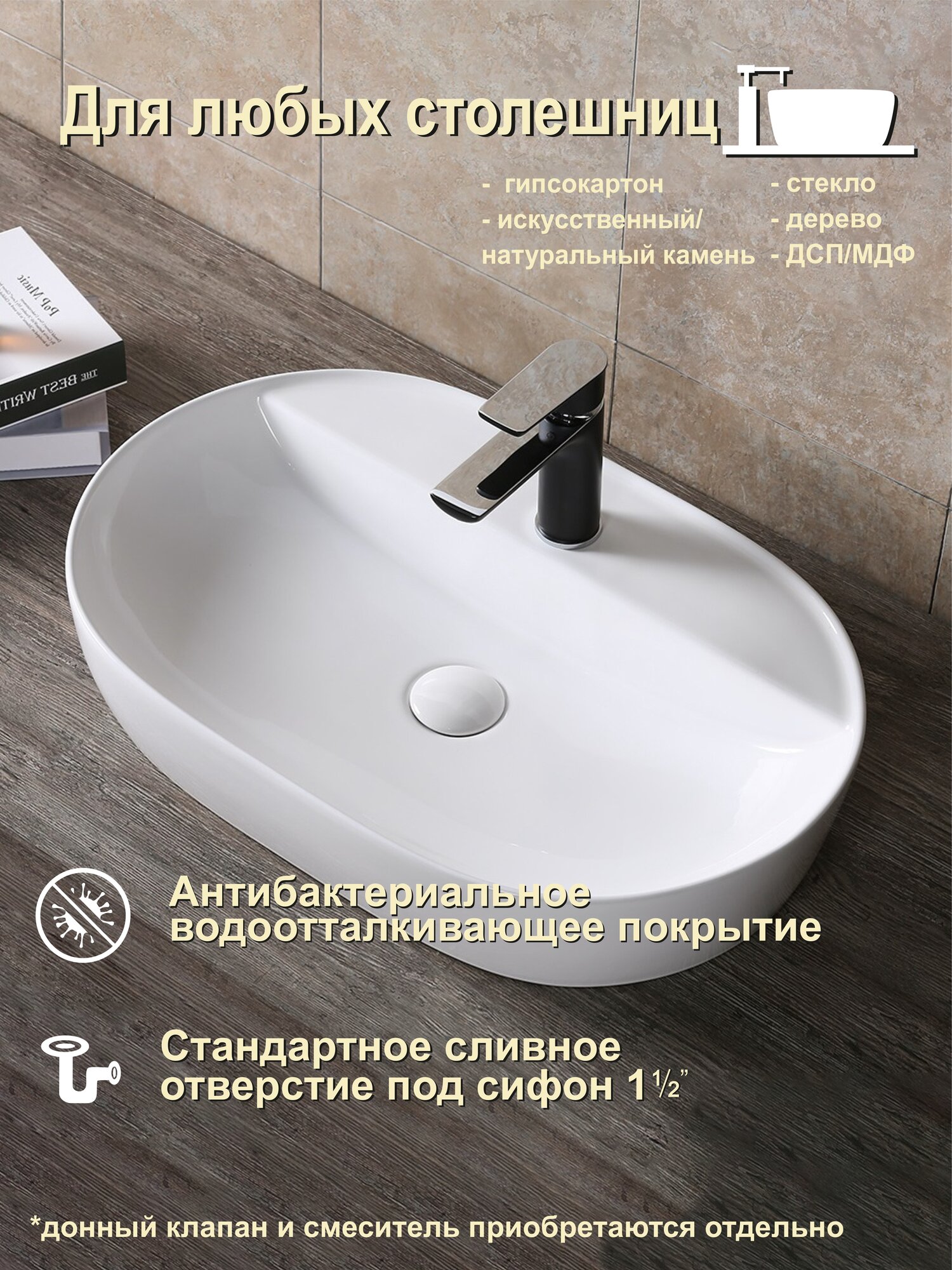 Раковина Ceruttispa CR0074 накладная, белая, овальная, с отверстием под смеситель 600х400х120 интересное: