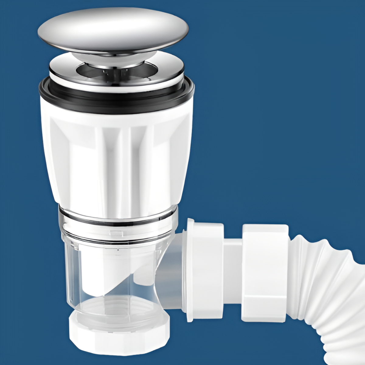 Сифон для раковины с донным клапаном без перелива белый глянцевый