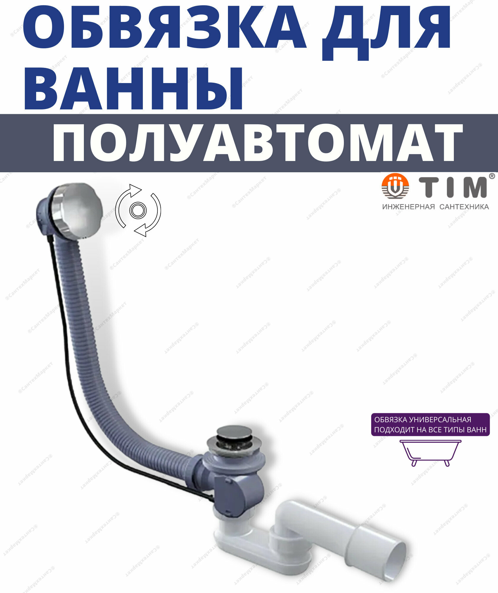 Обвязка для ванны TIM, слив-перелив на ванну полуавтомат BAS0170P