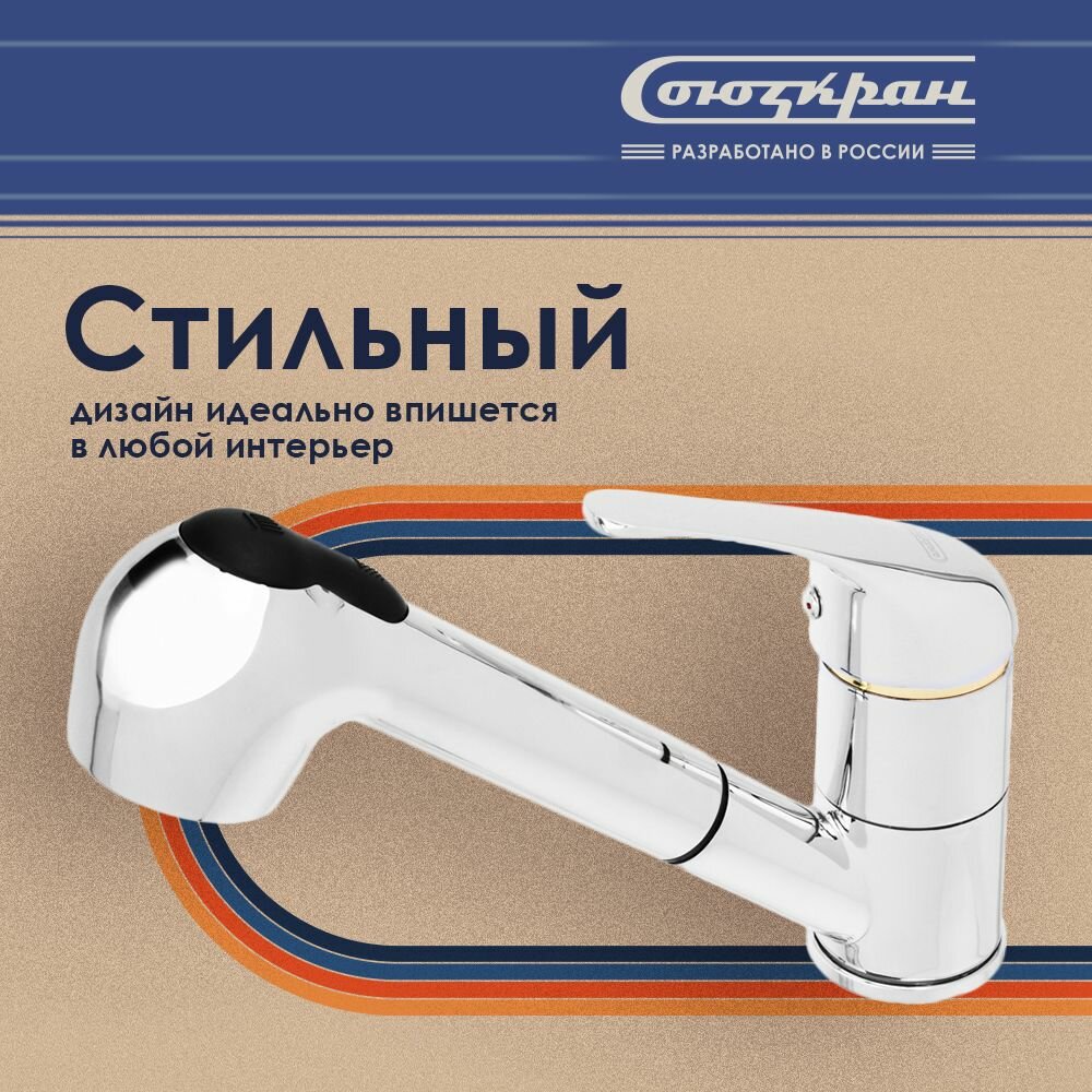 СоюзКран Смеситель для кухни, выдвижной излив, керам. картридж 40мм, хром, цинк, SK01-E119