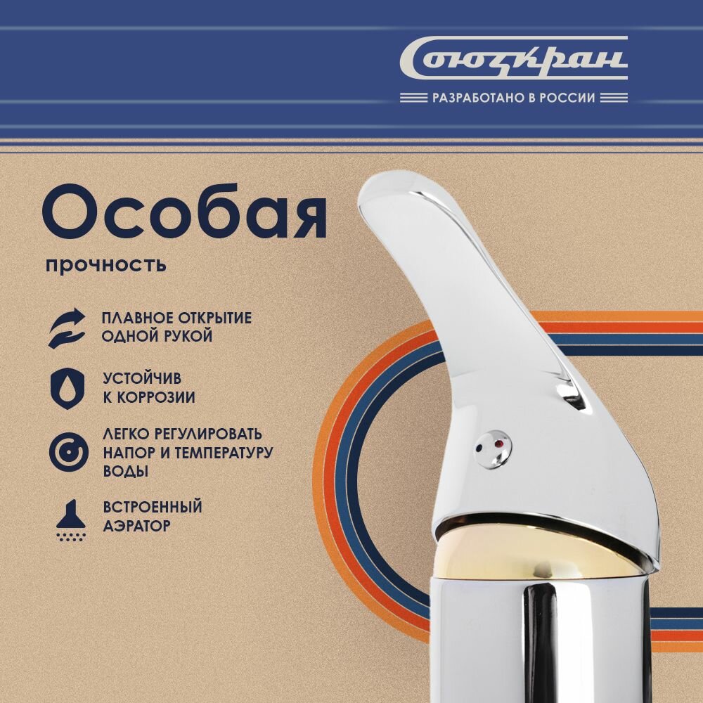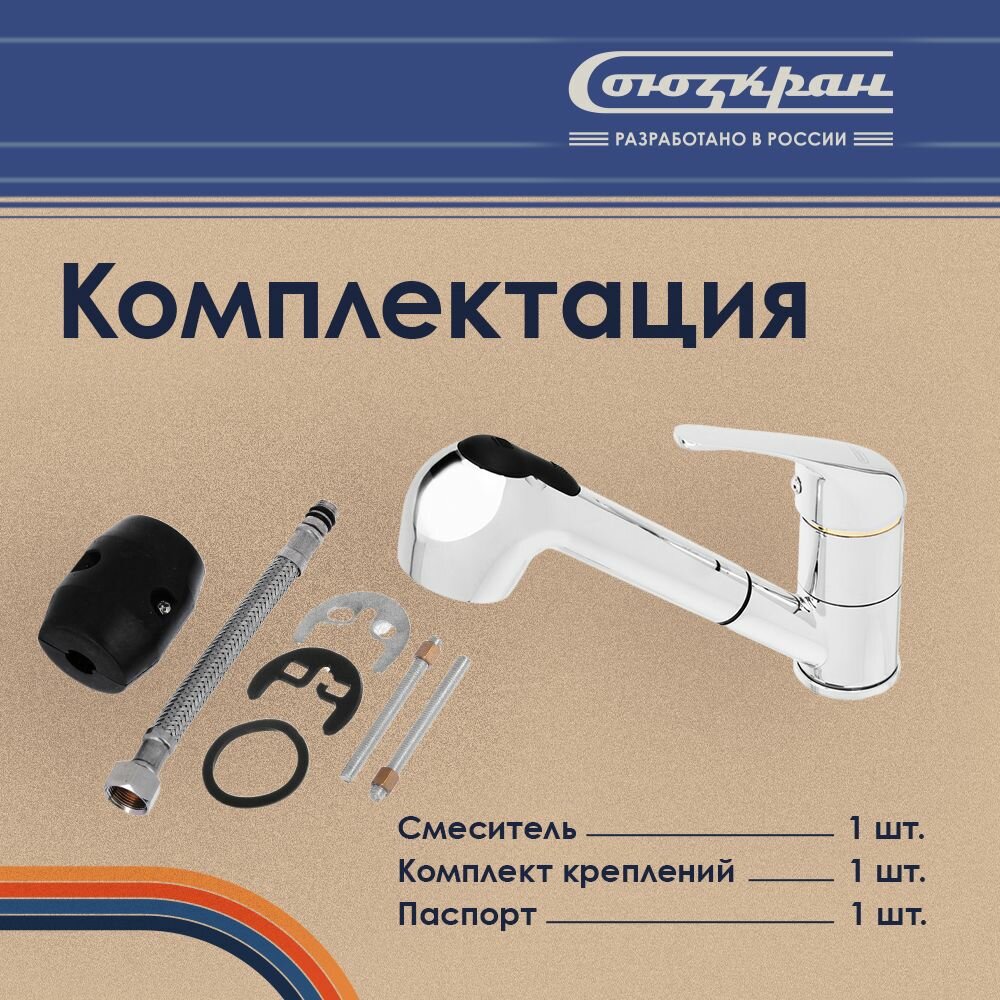 Смеситель для кухни с выдвижной лейкой (излив) Союзкран однорычажный, кран для раковины, умывальника, мойки