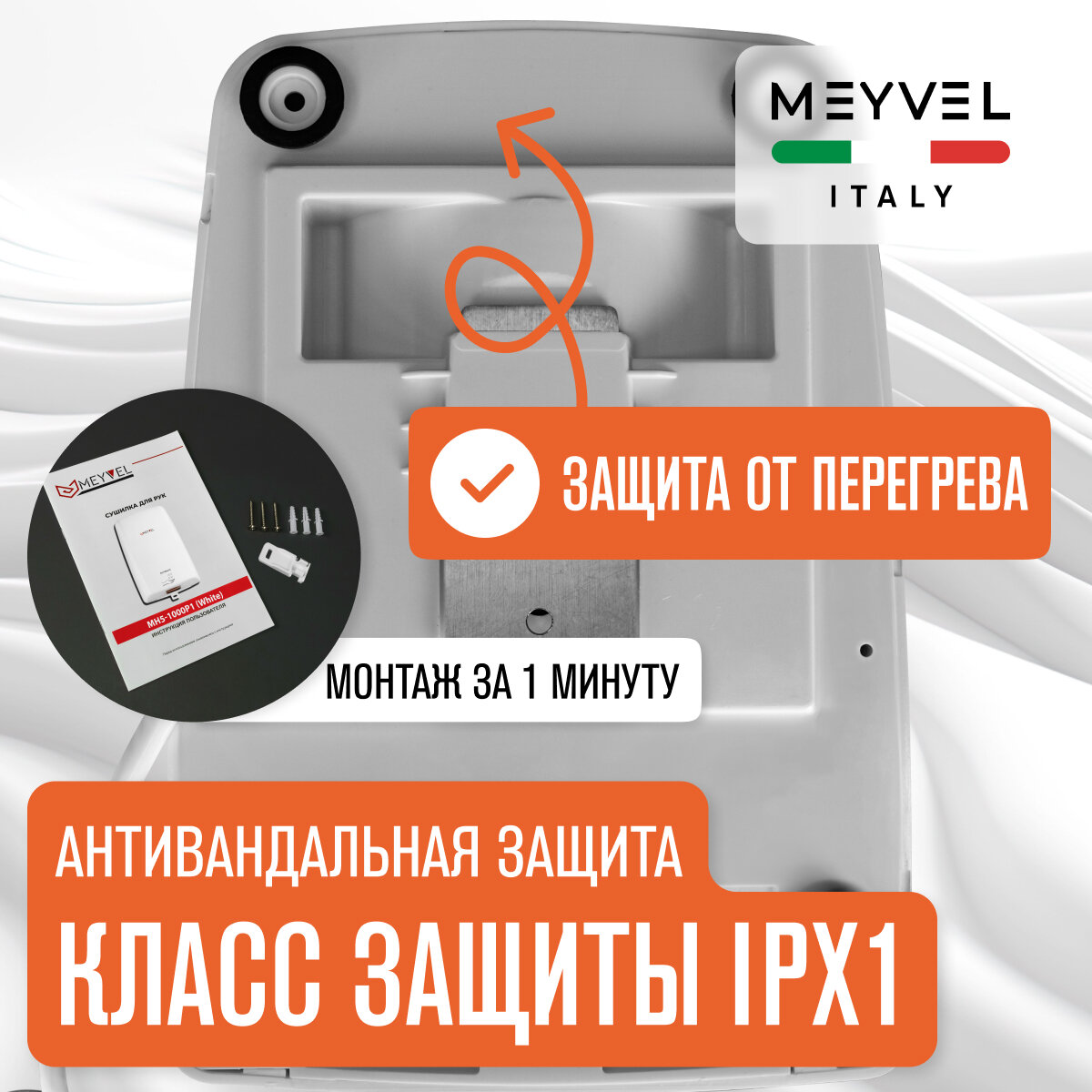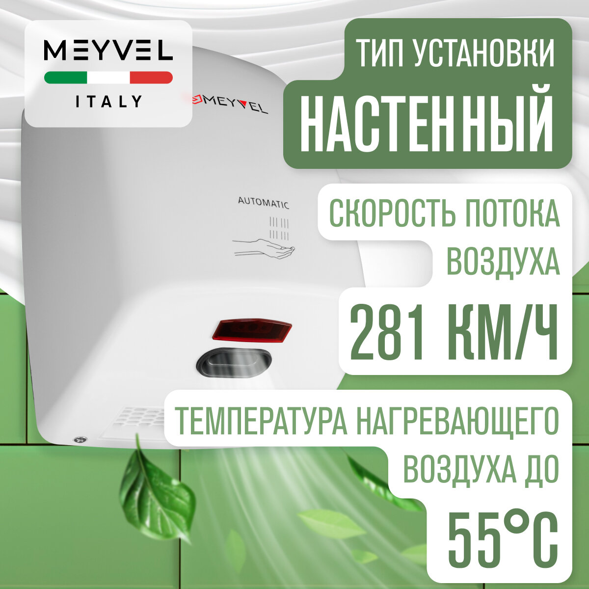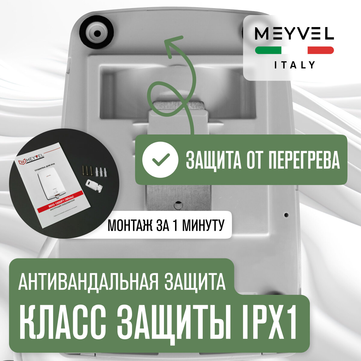 Сушилка для рук Meyvel электрическая высокоскоростная MH5-1000P1 интересное: