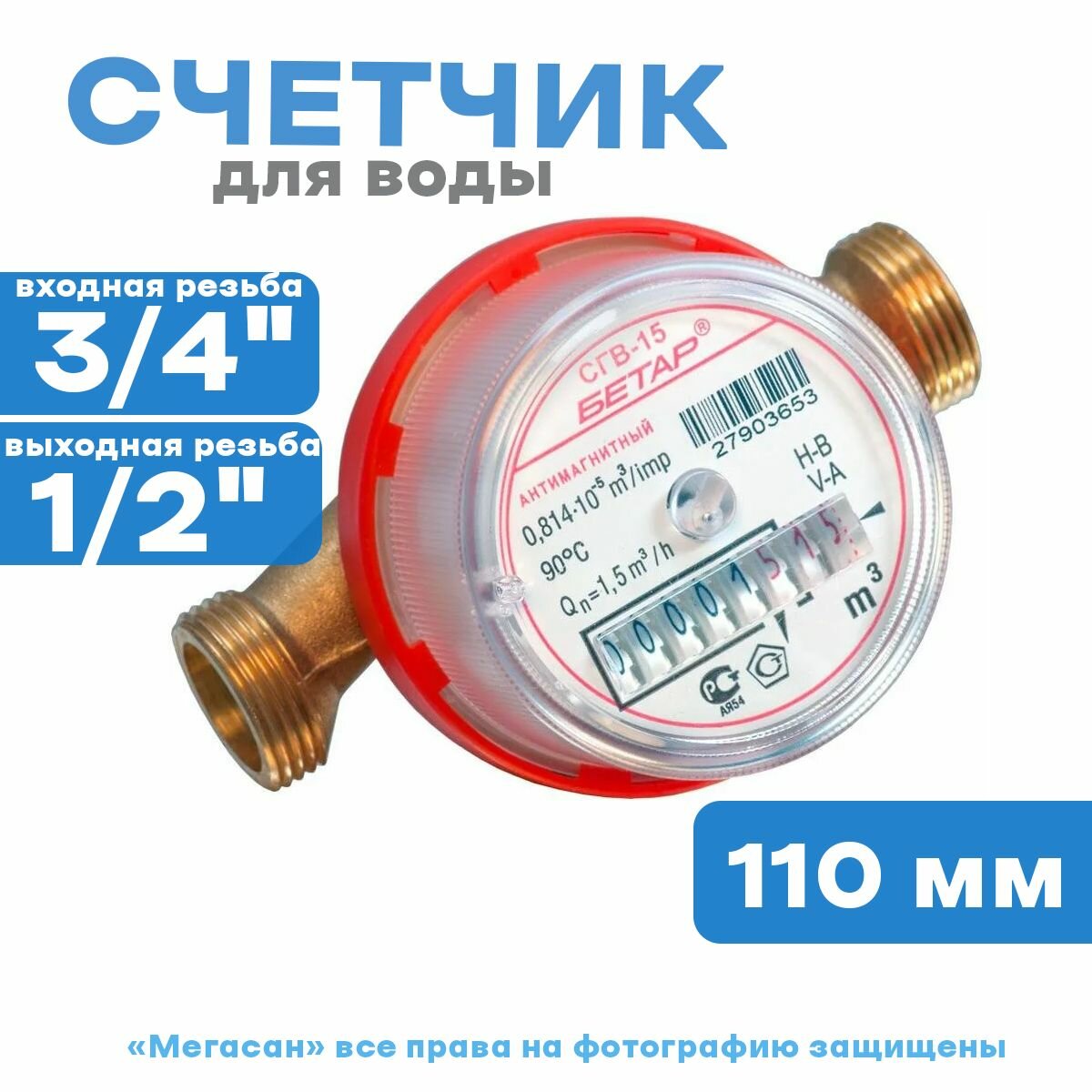 Купить Счетчик воды СГВ-15, универсальный, 1/2", без комплекта присоединения