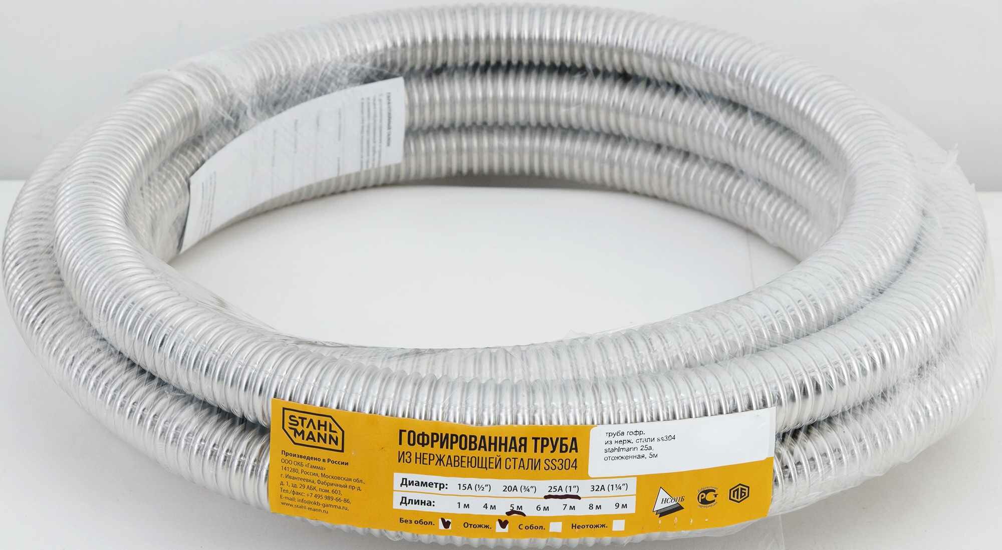 Труба гофрированная водопроводная из нержавеющей стали Stahlmann 25А, отожженная, 5м.