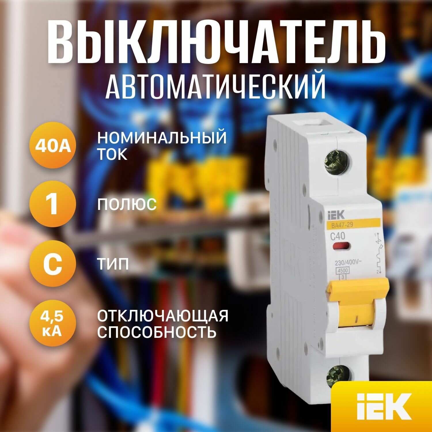 Купить Выключатель IEK автоматический однополюсный 40А С ВА47-29 4.5кА