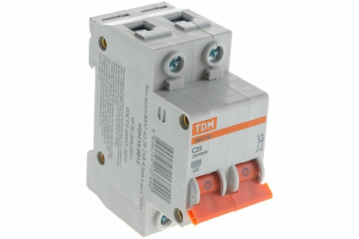 Автоматический выключатель ВА47-63 2P 25А 4,5кА х-ка С TDM {SQ0218-0012}