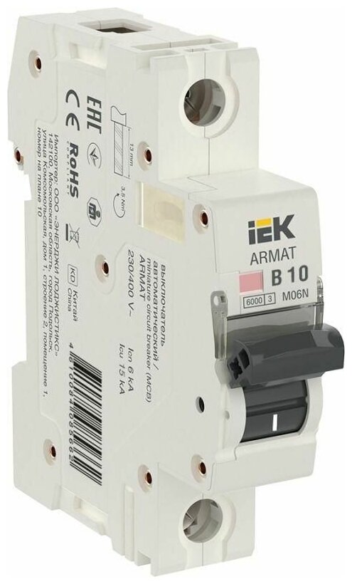 Выключатель автоматический 1п B 10А M06N ARMAT IEK AR-M06N-1-B010 (1 шт)