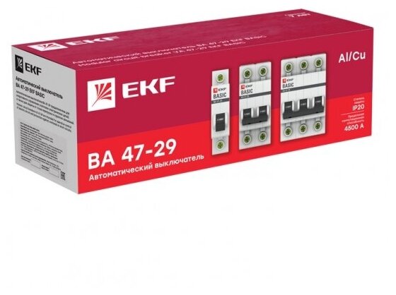 Выключатель автоматический трехполюсный ВА 47-29 20А C 4,5кА Basic. mcb4729-3-20C EKF