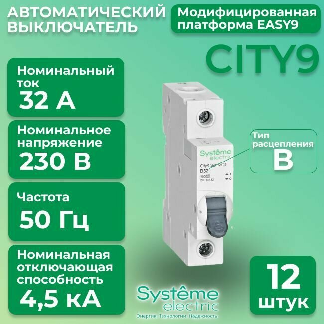 Купить Автоматический выключатель Systeme Electric 1P 32А тип В 4,5кА City9 - 12 шт.