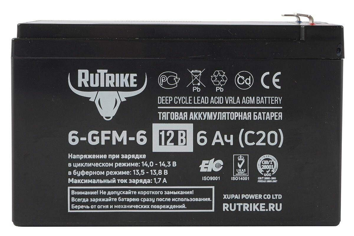 Rutrike Тяговый аккумулятор 6-GFM-6 (12v6a/h C20) 023937 . интересное: