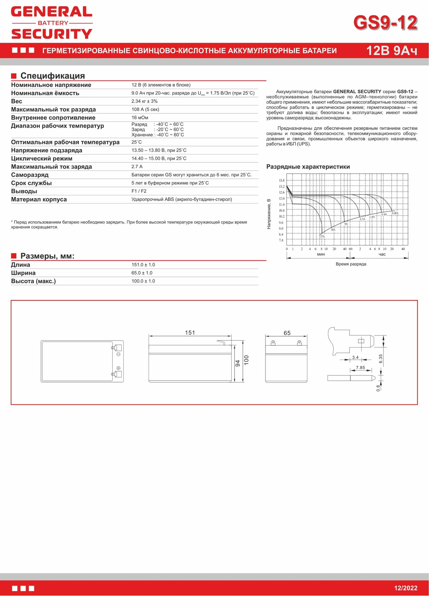 СохранитьАккумуляторная батарея General Security GS9-12 F2 интересное: