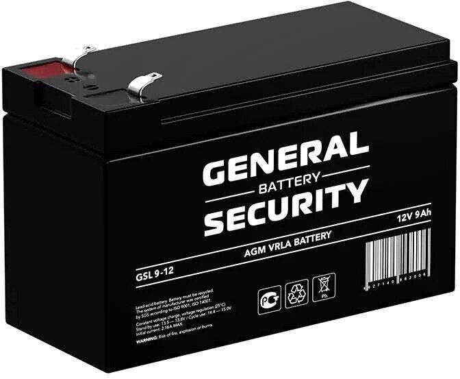Аккумулятор GS9-12 GENERAL SECURITY (12В 9Ач) для скутеров, ИБП, сигнализаций, GPS оборудования, телекоммуникации, эхолотов