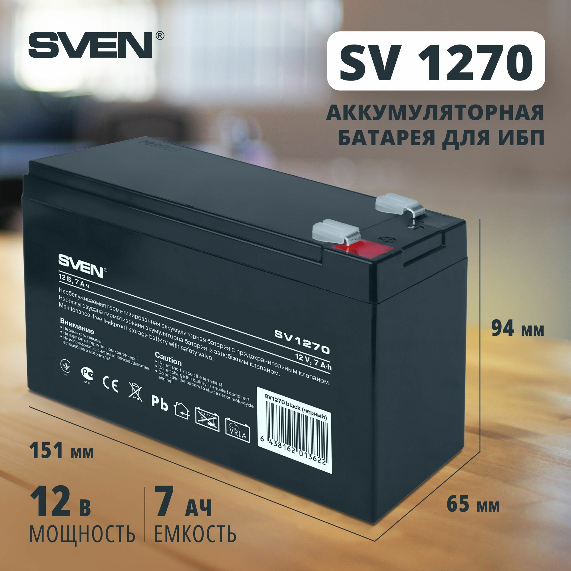 Батарея Sven SV-0222007 SV 1270 (12v 7Ah) . интересное: