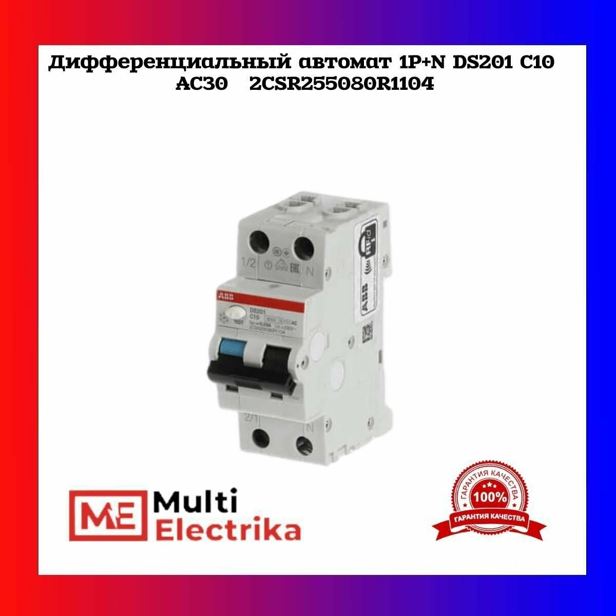 Дифференциальный автомат ABB 1P+N DS201 C10 AC30 1шт 2CSR255080R1104