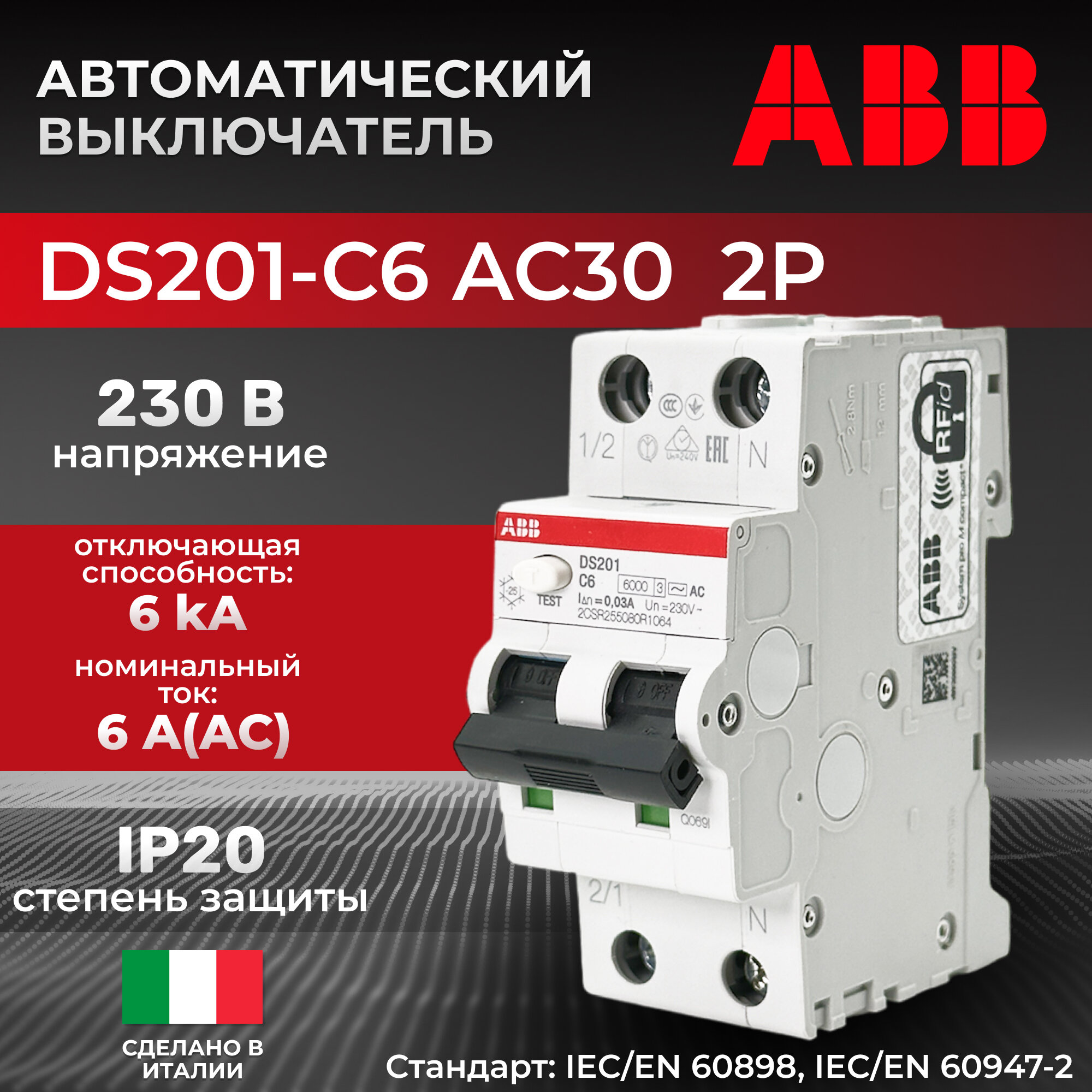 Дифференциальный автомат ABB 1P+N DS201 C6 AC30 2CSR255080R1064