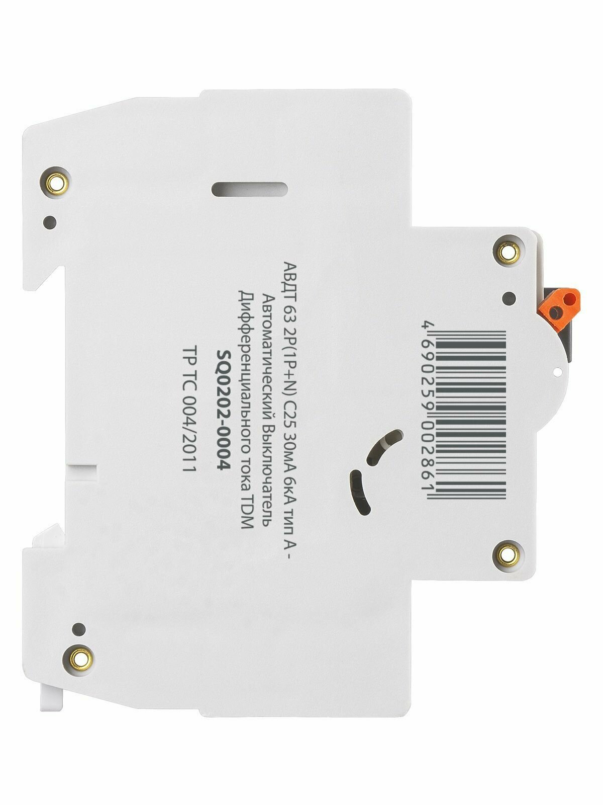 АВДТ 63 2Р(1Р+N) C25 30мА 6кА тип А - Автоматический Выключатель Дифференциального тока, TDM SQ0202-0004 (1 шт.)