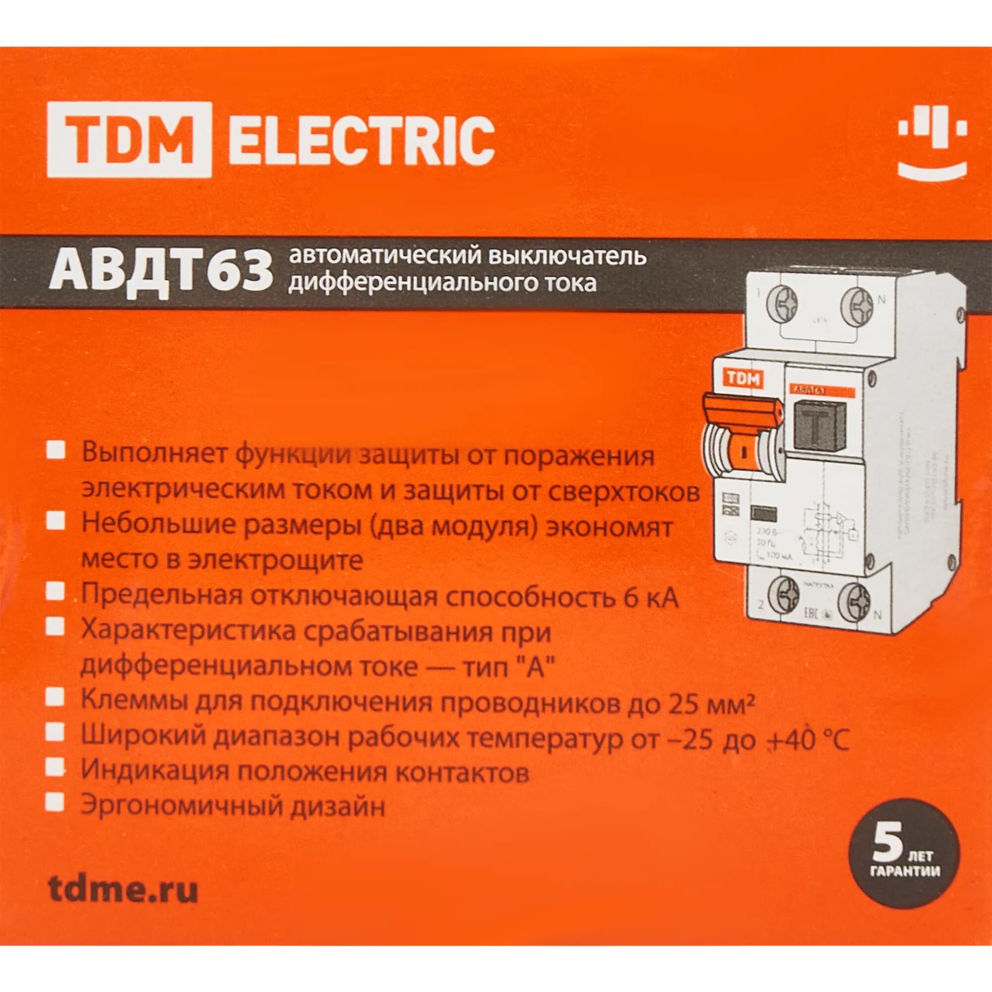 АВДТ 63 2Р(1Р+N) C25 30мА 6кА тип А - Автоматический Выключатель Дифференциального тока TDM SQ0202-0004 (1 шт.)