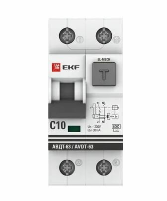 Купить EKF Дифференциальный автом. АВДТ-63 10А 30мА хар-ка C, эл-мех тип AС 6кА PROxima Da63-10-30-ac
