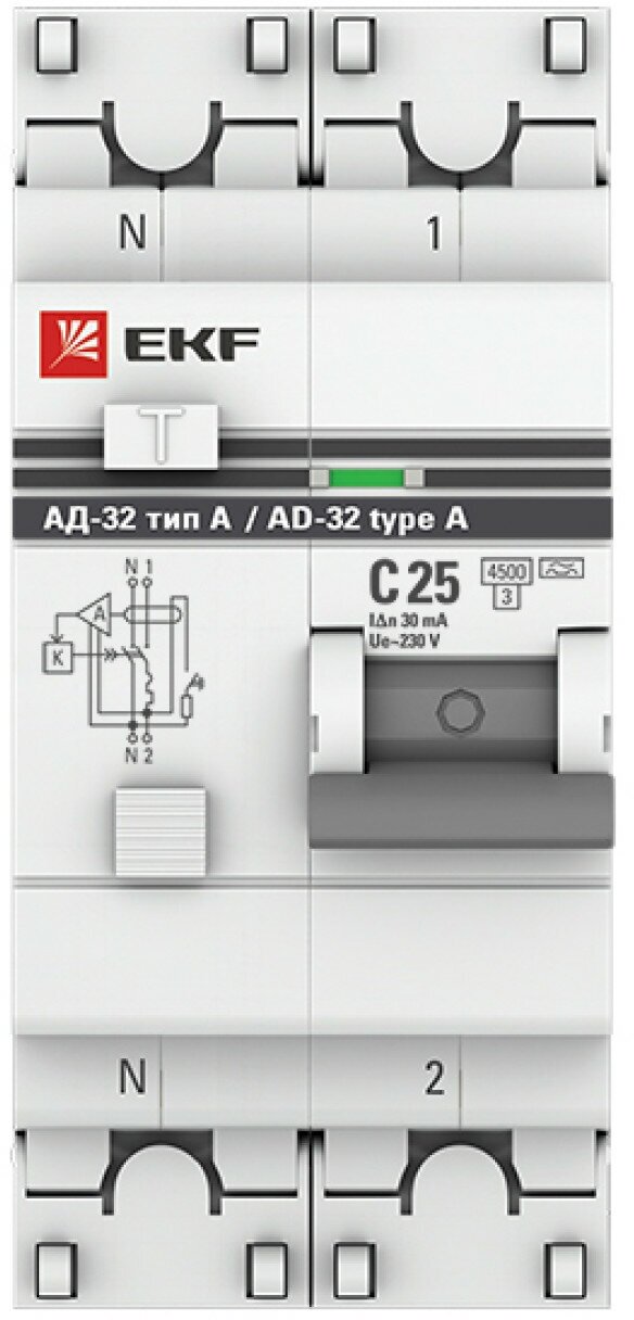 Автомат дифференциальный EKF PROxima АД-32 25А 30 мА 1P+N тип A 4,5 кА (DA32-25-30-a-pro)