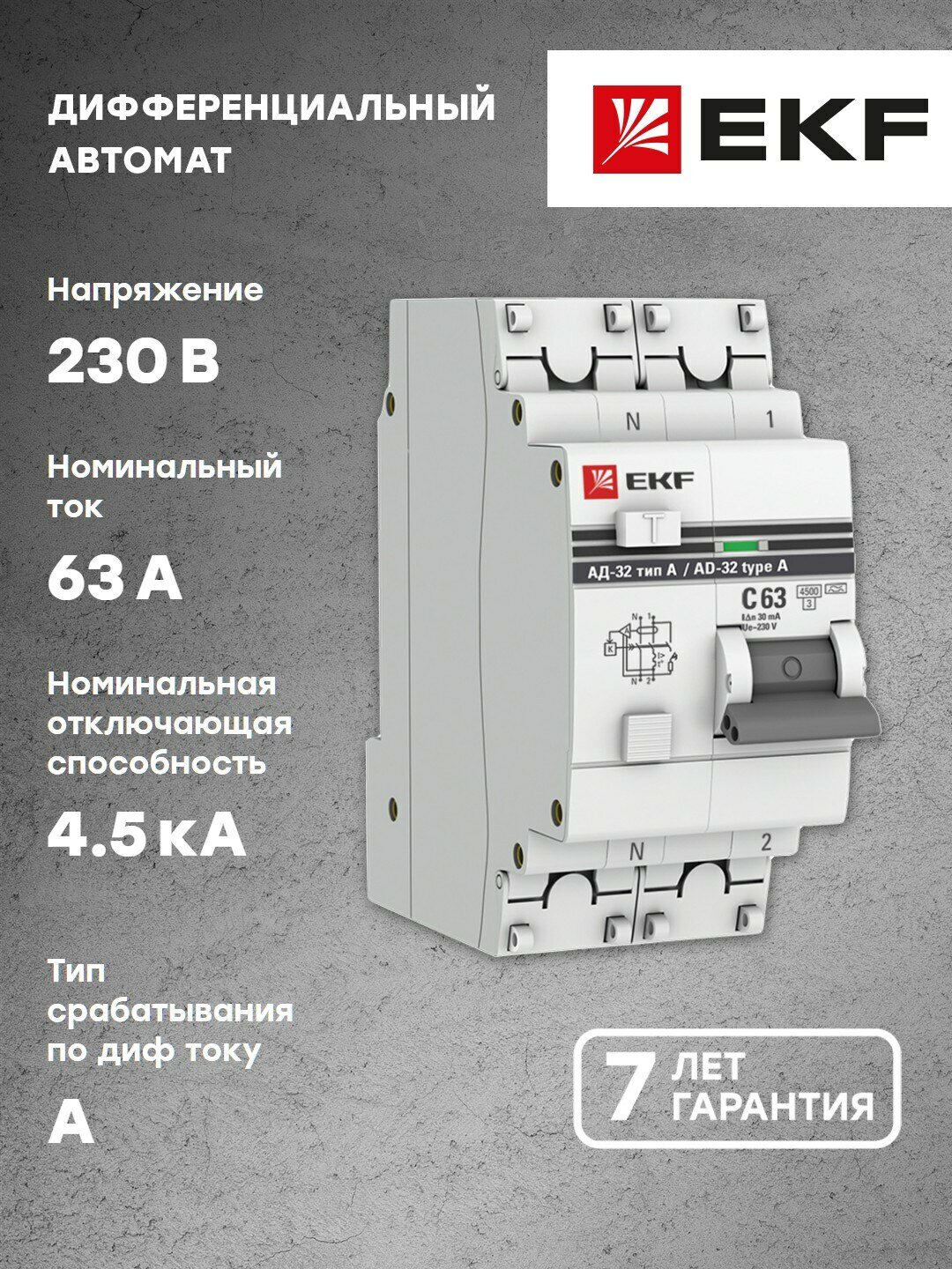 EKF Дифференциальный автомат АД-32 1P N 63А/30мА тип А PROxima DA32-63-30-a-pro