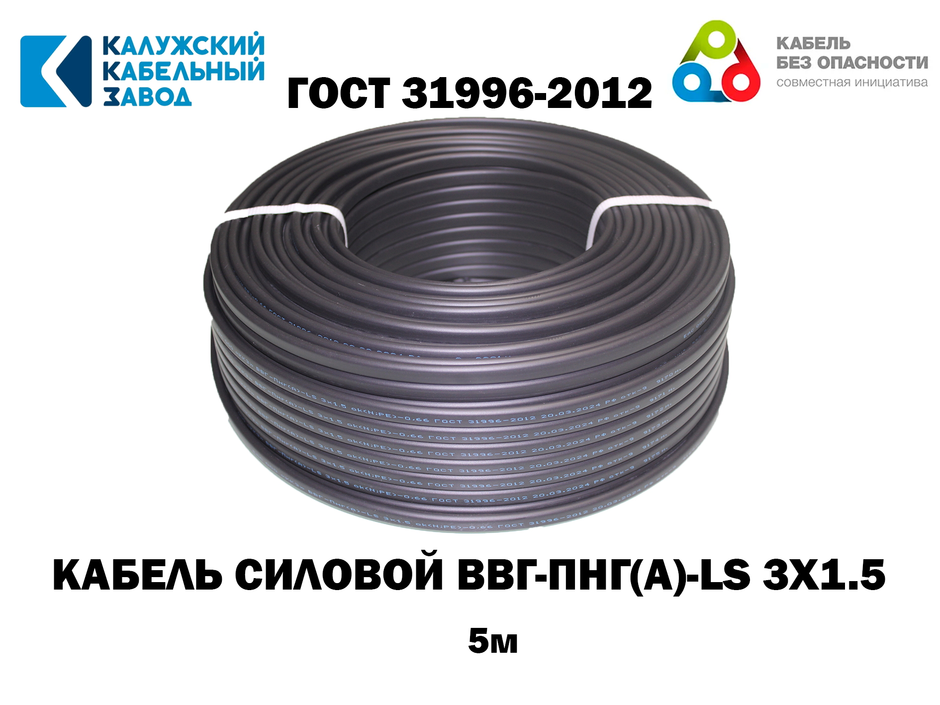 Купить Кабель электрический ВВГ-Пнг(А)-LS 3х1.5 5метров ГОСТ Калужский кабельный завод