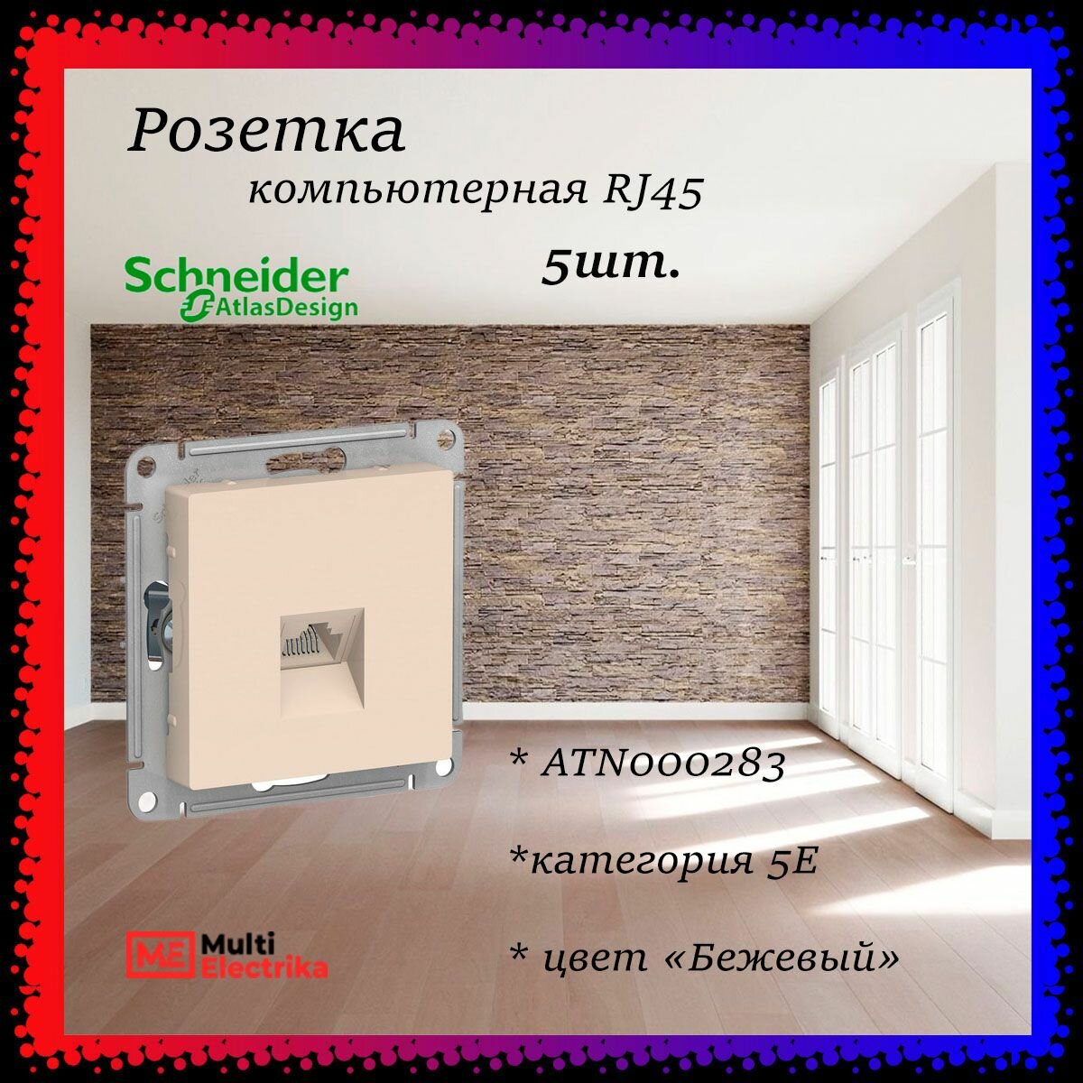 Купить Розетка компьютерная RJ-45 кат. 5е, Бежевая Schneider Electric, Atlas Design ATN000283 5шт