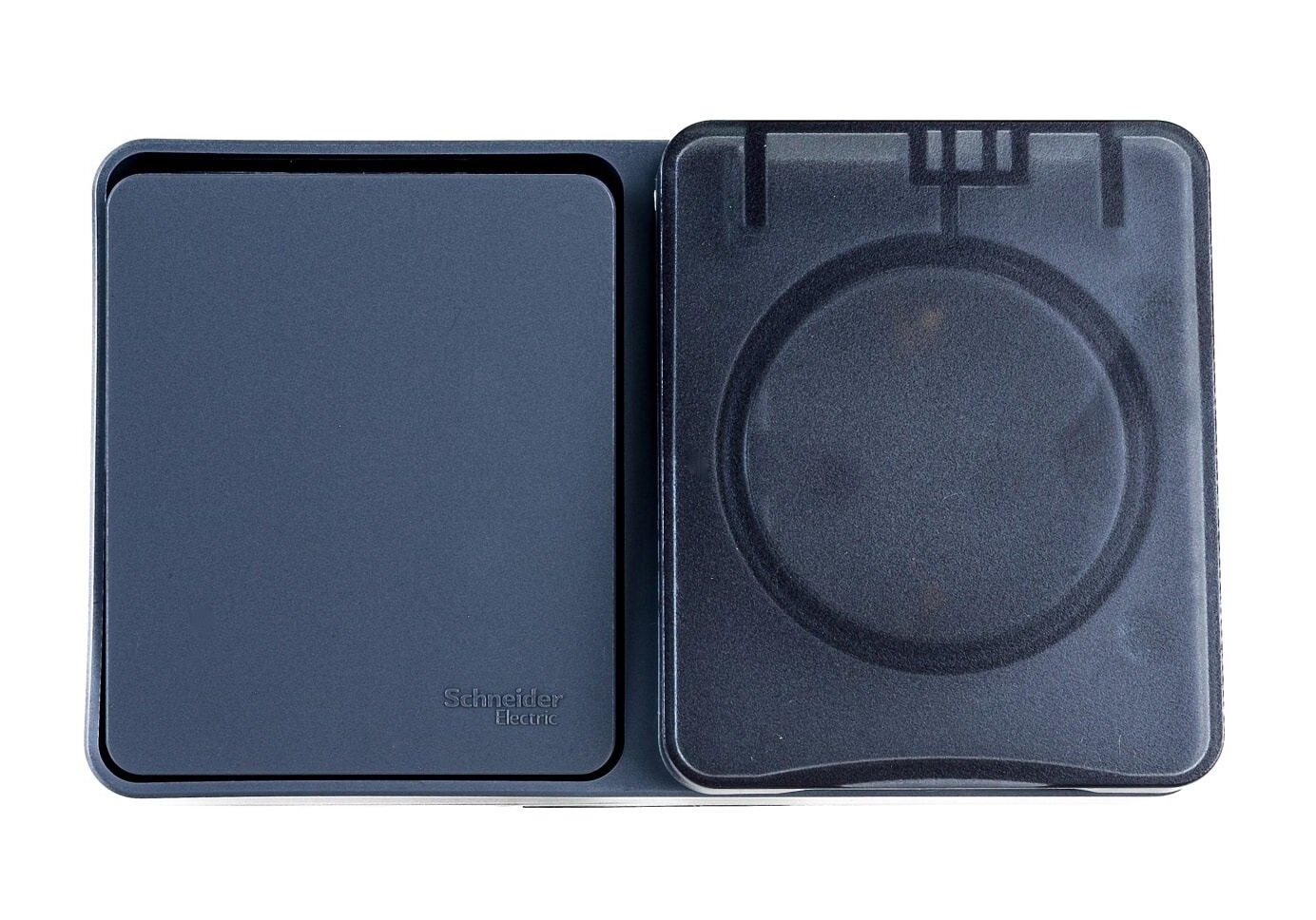 Блок выключатель + розетка уличная IP54, пылевлагозащищенная электрическая 2-клавишная Schneider Electric (Systeme Electric) Atlas Design с заземлением, с защитными шторкми, 16А, Антрацит - 1 шт.