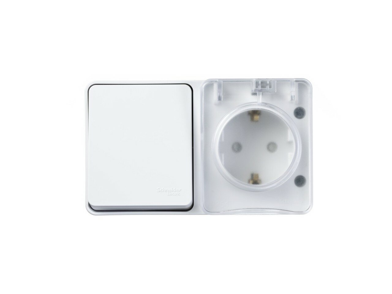 AtlasDesign Profi54 блок: розетка с заземлением со шторками 16А 250B, выключатель одноклавишный IP54 10А, белый, Россия , SCHNEIDER ELECTRIC ATN540170 (1 шт.)