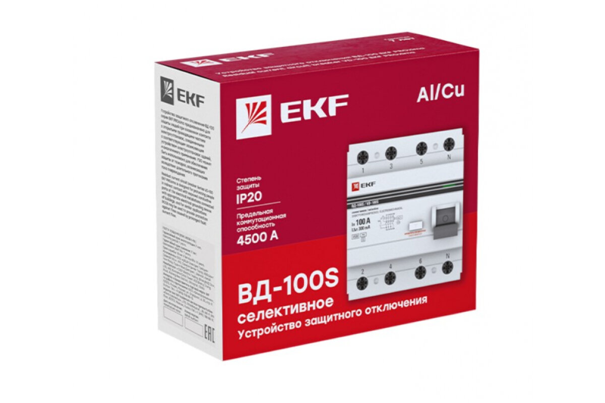 EKF PROxima ВД-100 УЗО 4P 100А/300мА (S) электромеханическое, EKF, арт.elcb-4-100-300S-em-pro
