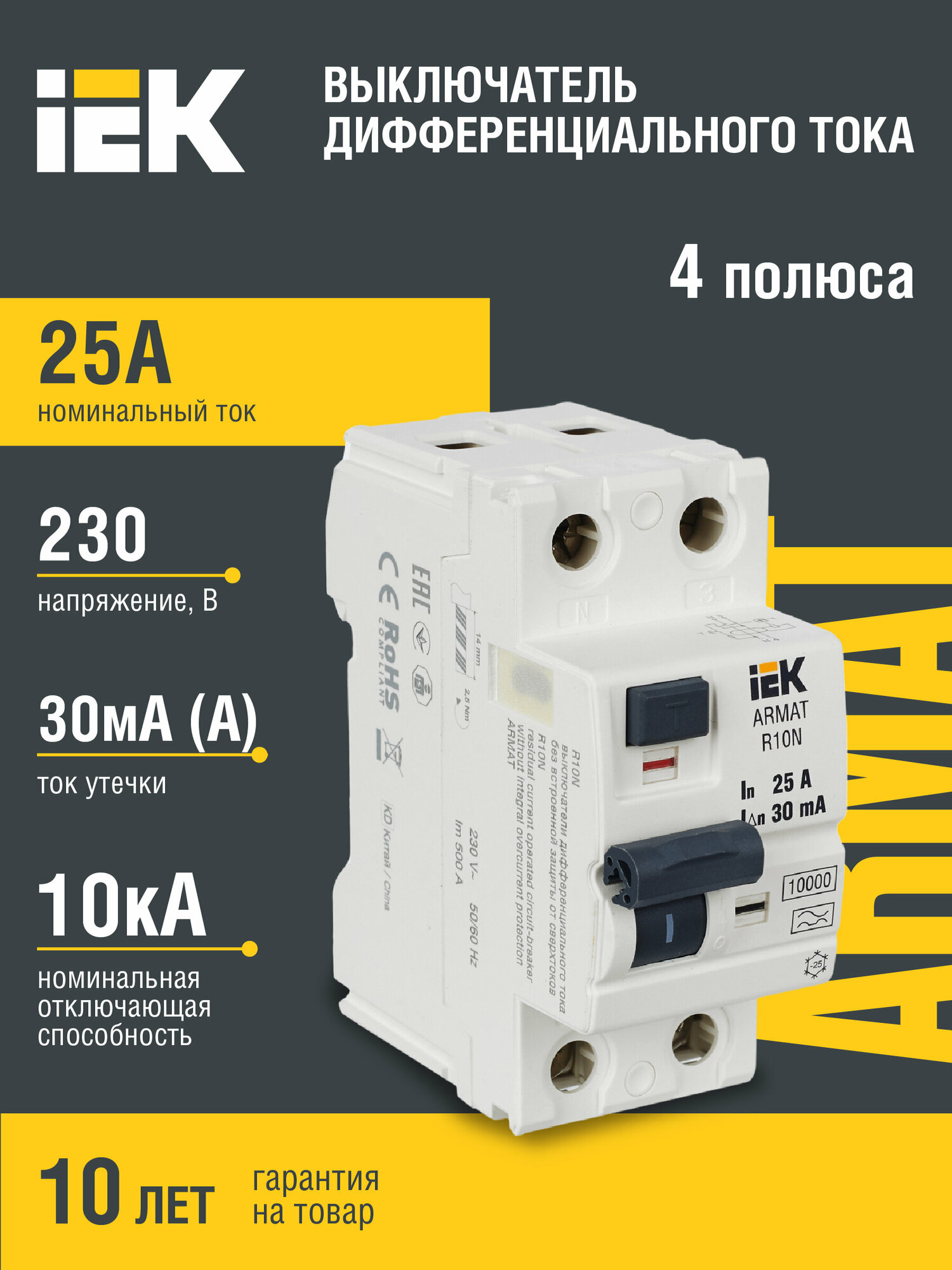 СохранитьARMAT Выключатель дифференциального тока R10N 2P 25А 30мА тип A IEK интересное: