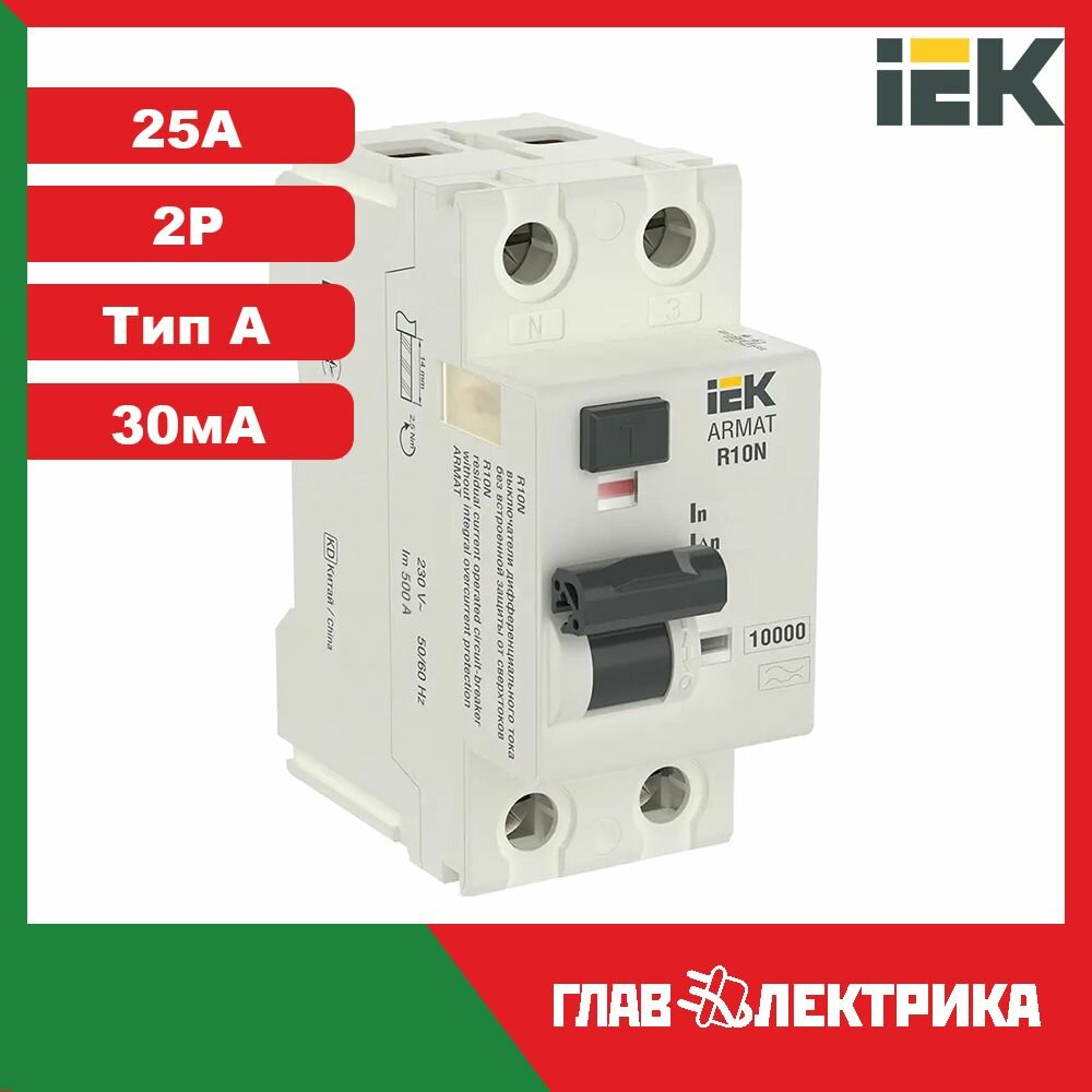 Выключатель дифференциального тока (УЗО) 2п 25А 30мА тип A ВДТ R10N ARMAT | код AR-R10N-2-025A030 | IEK (1 шт.)