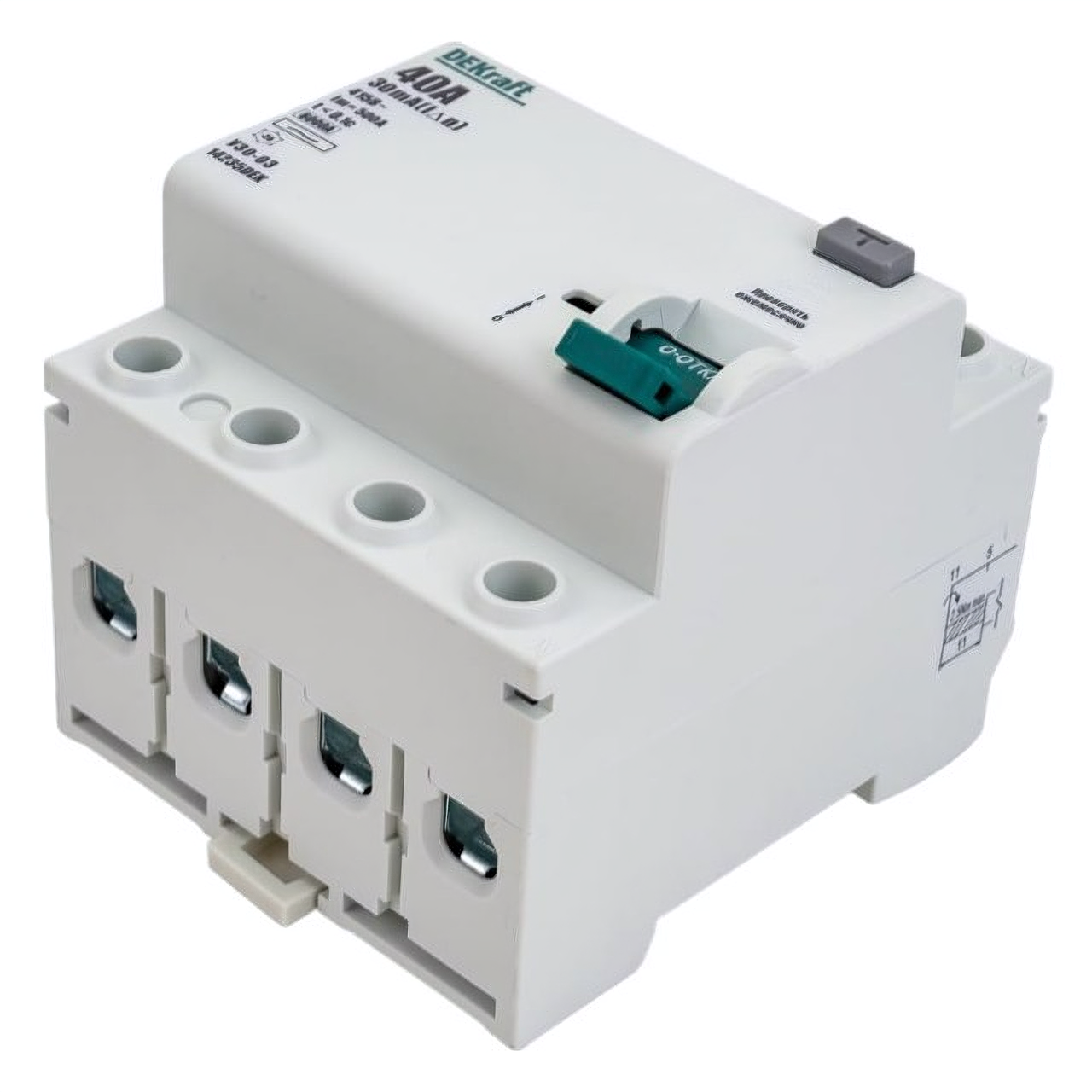Устройство защитного отключения DEKraft УЗО-03 ВДТ 4P, 40А, 100мА, тип AC, 6кА