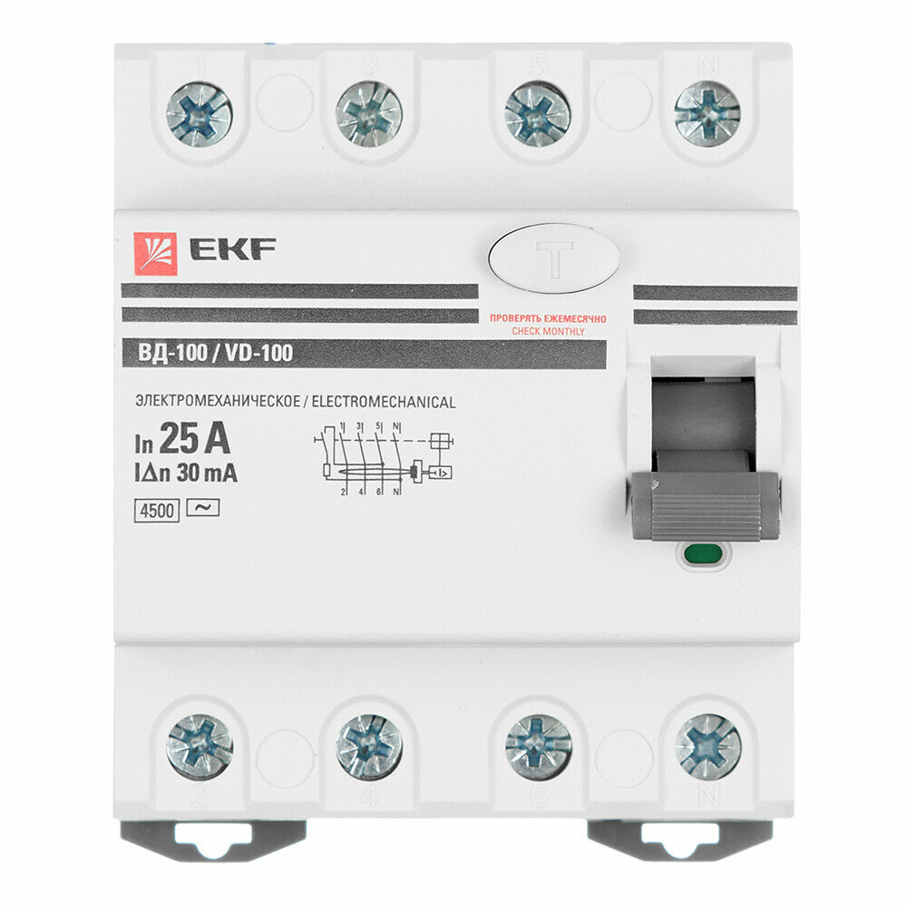 EKF УЗО ВД-100 4P 25А/ 30мА (электромеханическое) PROxima арт. elcb-4-25-30-em-pro