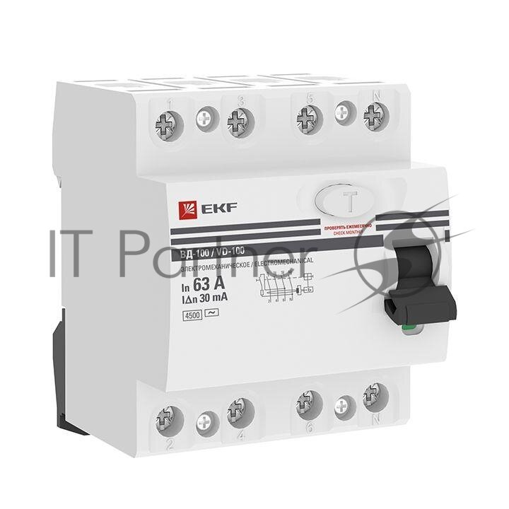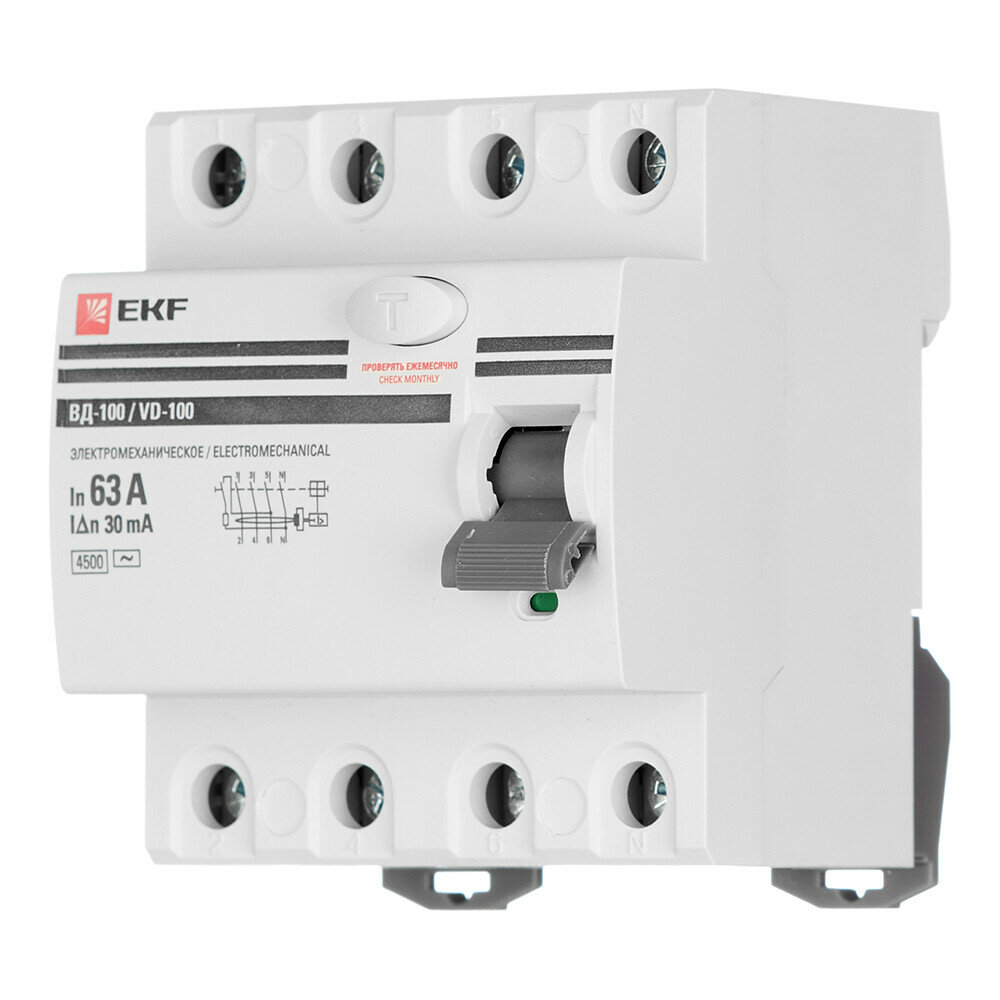EKF PROxima ВД-100 УЗО 4P 63А/30мА (AC) электромеханическое