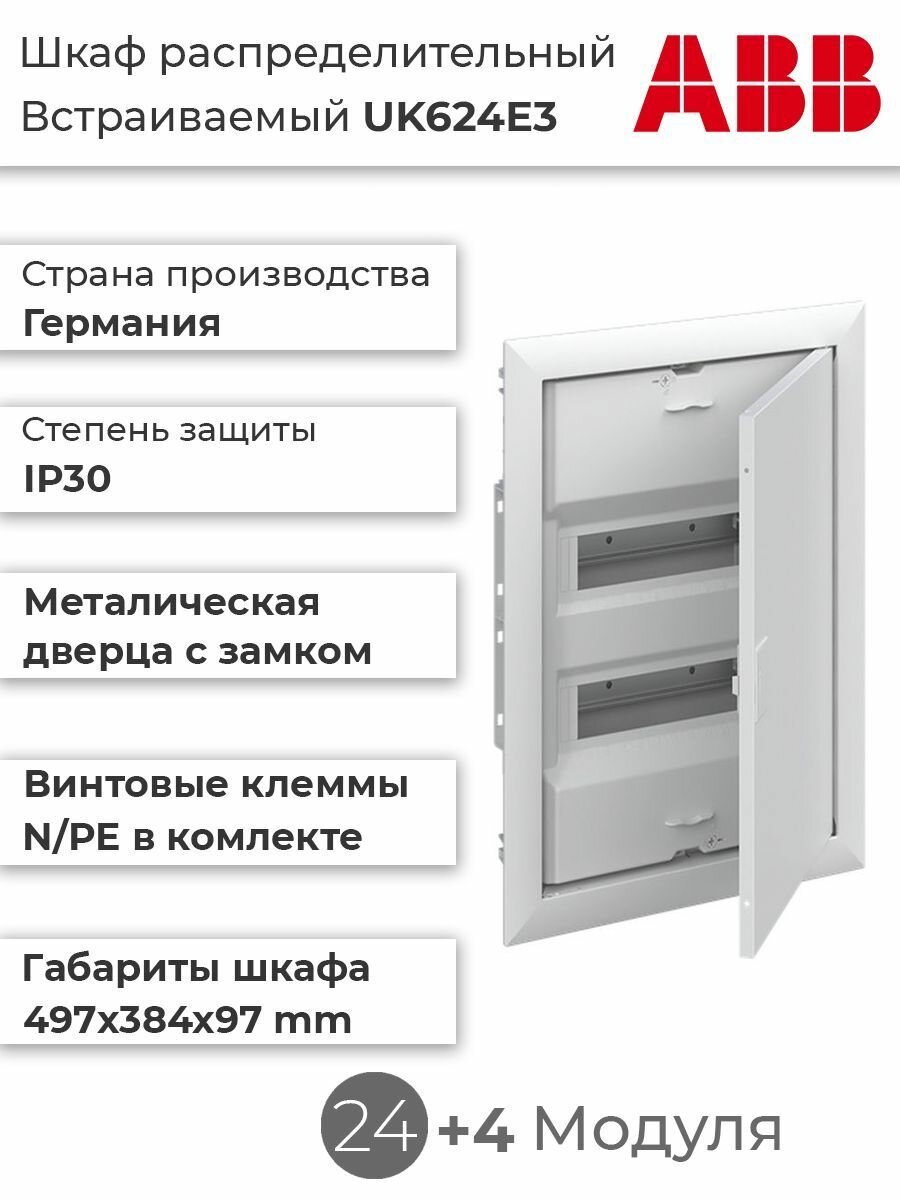 ABB Uk624e3 шкаф внутреннего монтажа на 24м с винтовыми npe 2CPX077841R9999