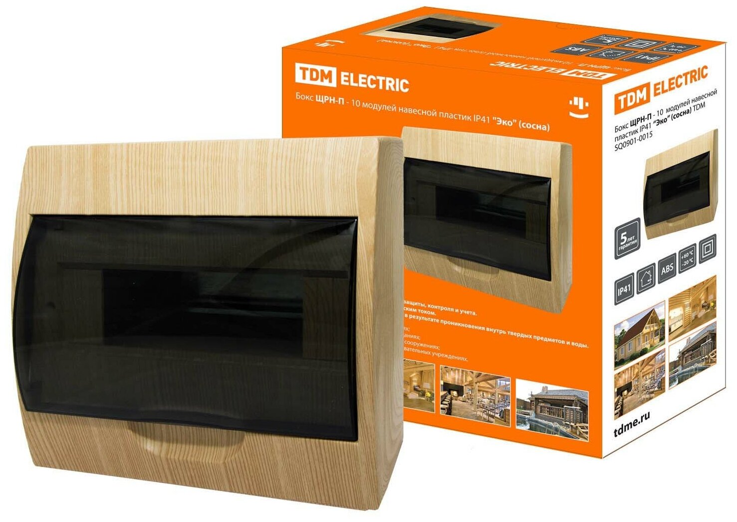 Купить TDM бокс ЩРН-П-10 Эко модулей навесной сосна с дымчатой дверцей IP41 SQ0901-0015