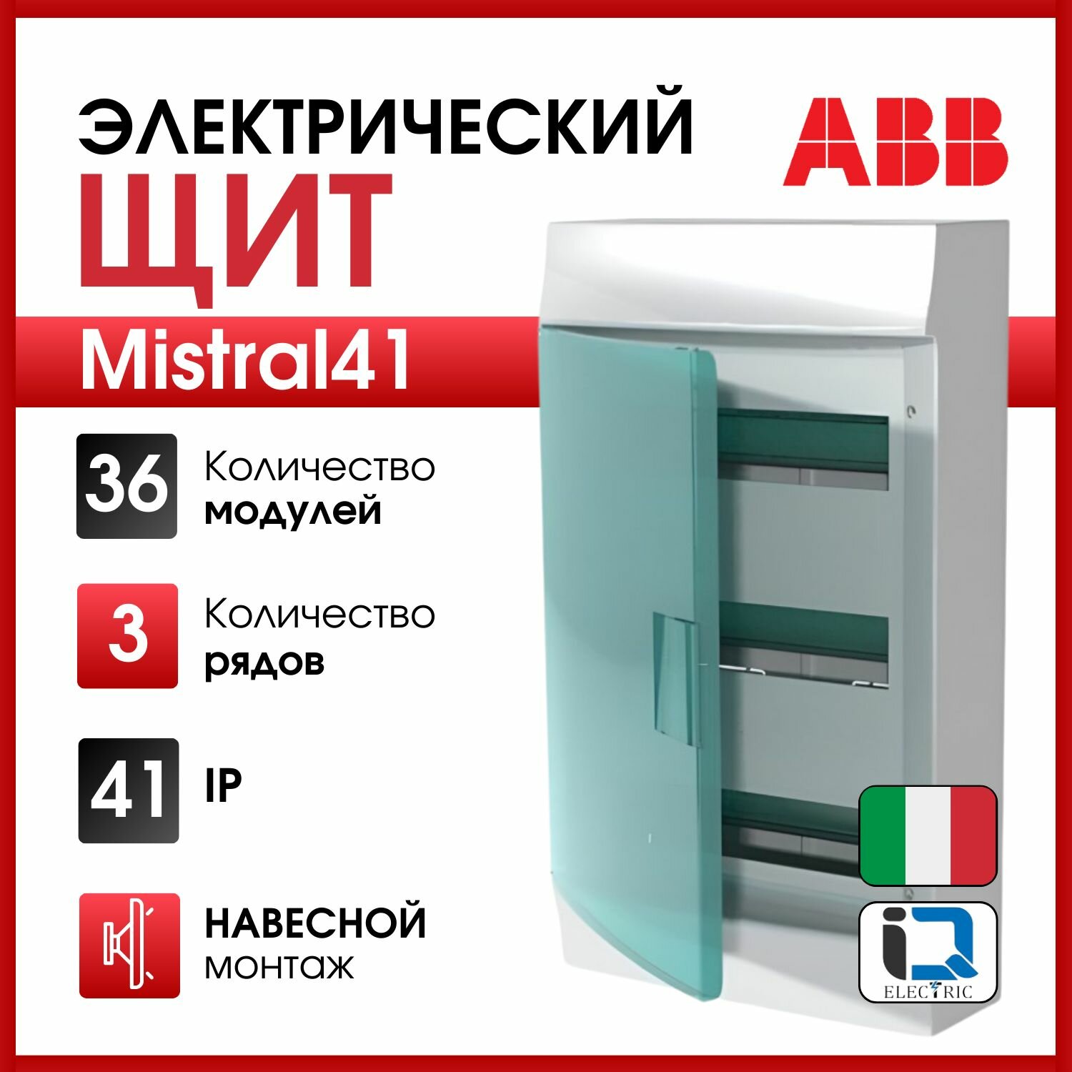 Бокс настенный ABB Mistral41 36М (3x12) зеленая дверь с клеммным блоком 1SPE007717F0621 (Оригинал)