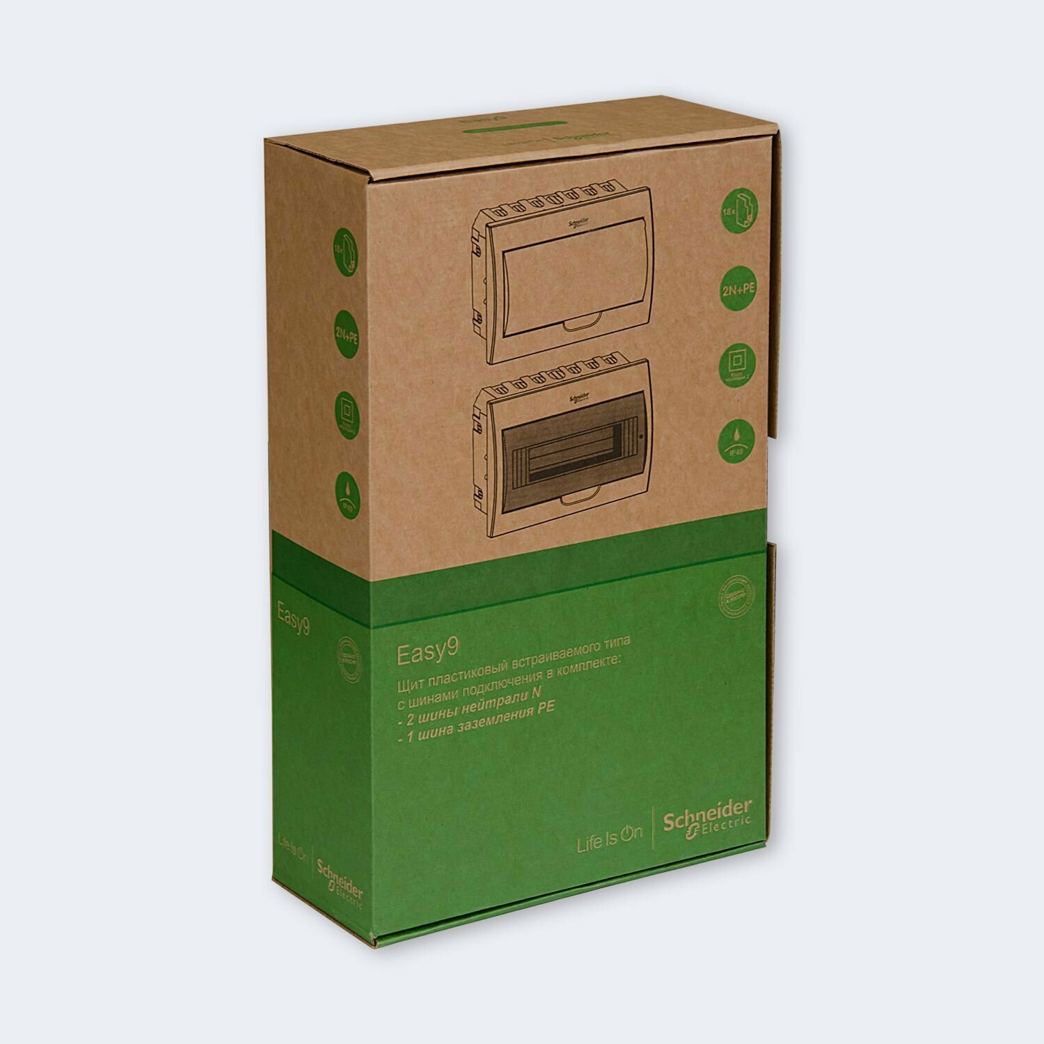 Бокс встраиваемый на 18 модулей с прозрачной дверцей Schneider Electric Easy9 Box IP40, IK07, 63А, 2 клеммы