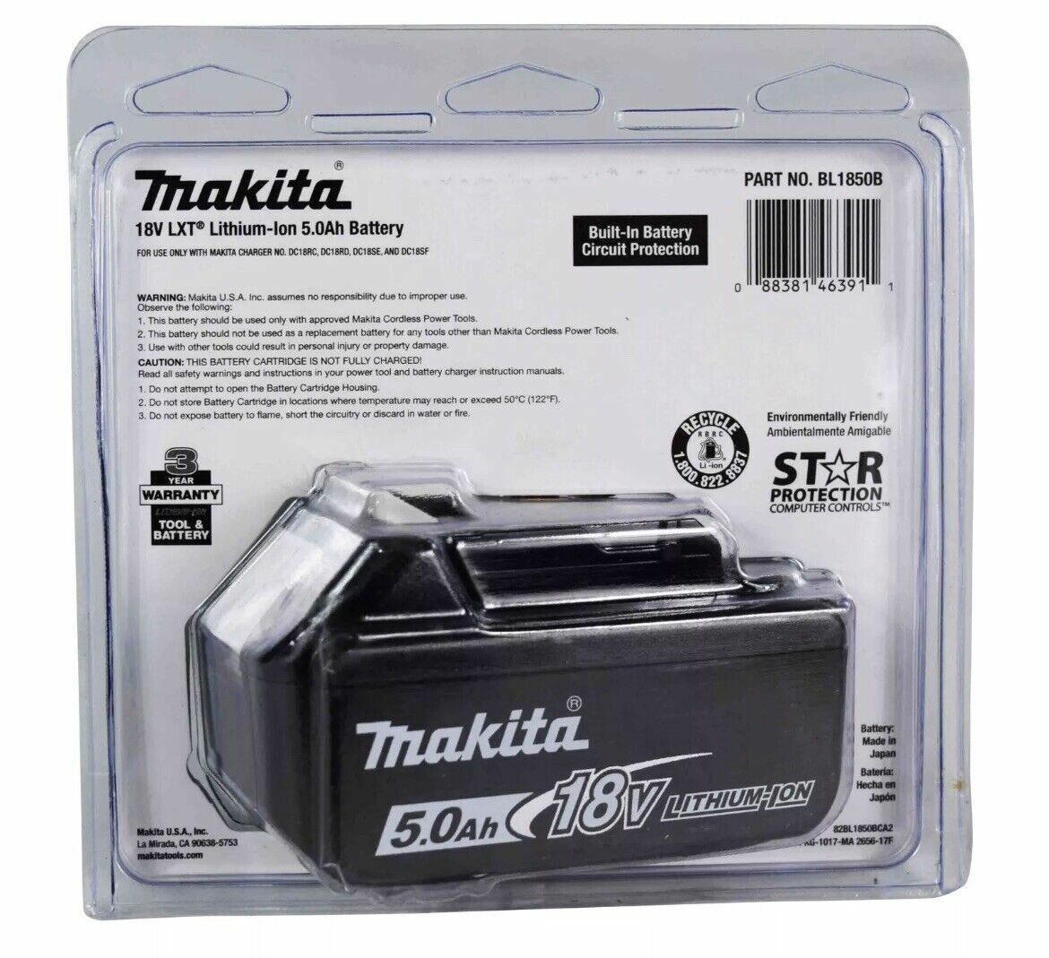 Аккумулятор Makita BL1850B Li-Ion 18 В 5 А·ч